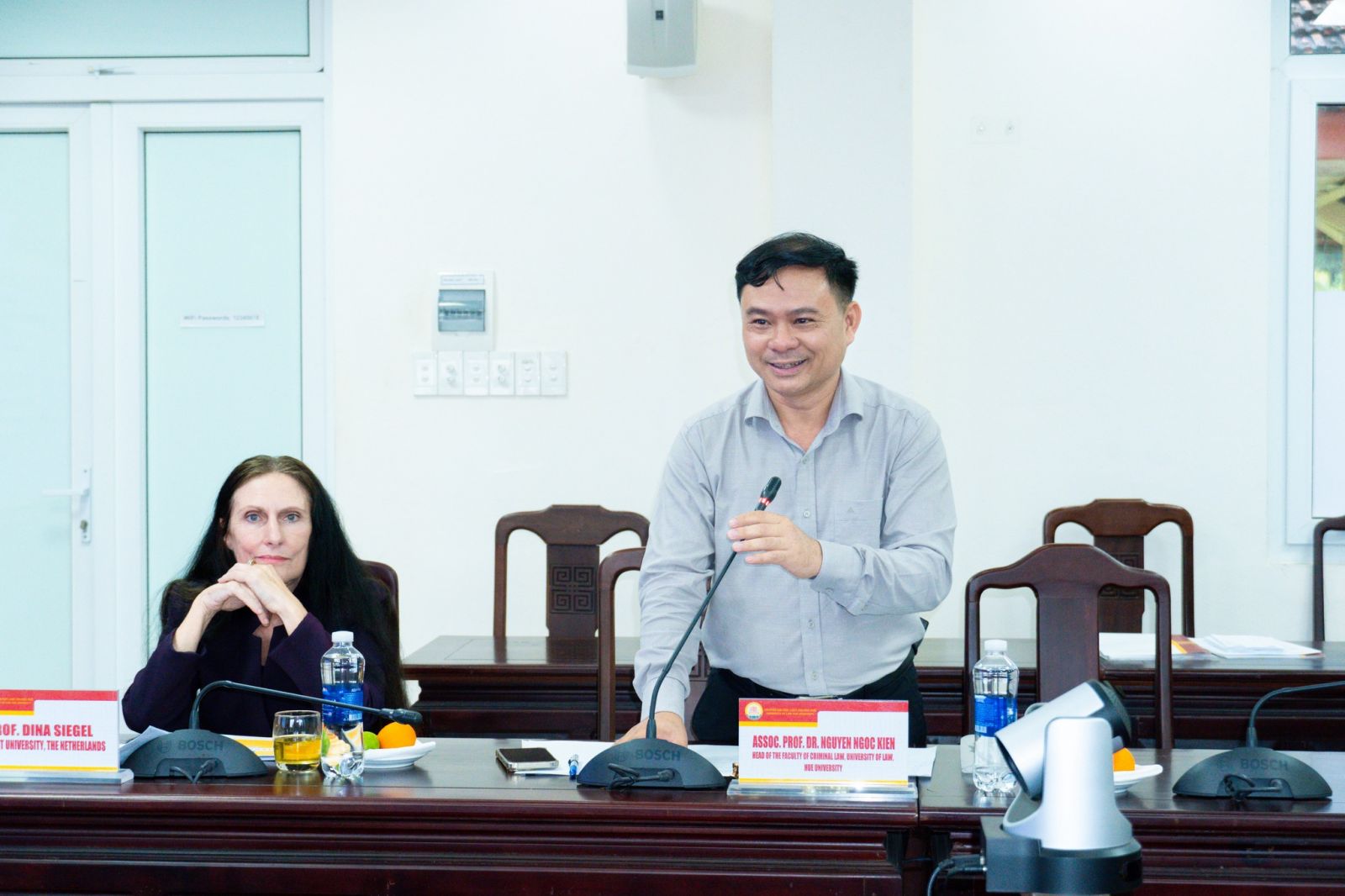 In his opening remarks, Assoc. Prof. Dr. Doan Duc Luong expressed his pleasure in welcoming Professor Dina Siegel to visit and work at Hue University of Law, Hue University. The Rector emphasized that in recent years, Hue University of Law has always paid attention to expanding international cooperation, especially with reputable educational and research institutions around the world, aiming at enhancing training quality, promoting scientific research, and advancing international academic integration.