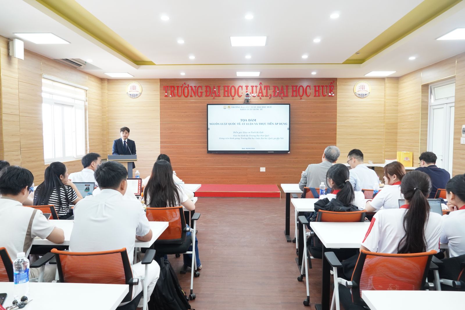 Update day: 06-04-2026On April 6, 2026, Hue University of Law, Hue University, hosted an international academic seminar titled “Sources of International Law: Theory and Practice” The event featured a presentation by Professor Park Ki-Gab (Korean National University), along with the participation of numerous lecturers, students, and researchers interested in the field of international law.