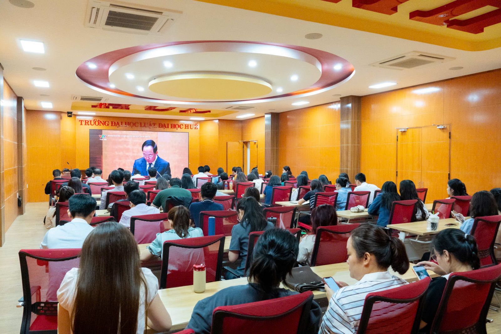 Tại điểm cầu Đại học Huế có sự tham dự của đồng chí Nguyễn Hồng Sơn, Bí thư Đảng uỷ. Tại điểm cầu Trường Đại học Luật, Đại học Huế có đồng chí Đoàn Đức Lương, Uỷ viên Ban Thường vụ Đảng uỷ Đại học Huế; Phó Bí thư Đảng uỷ, Hiệu trưởng Nhà trường; đồng chí Nguyễn Sơn Hà, Uỷ viên Ban Thường vụ Đảng uỷ, Trưởng phòng Khảo thí - BĐCLGD; đồng chí Nguyễn Duy Phương, nguyên Phó Bí thư Đảng uỷ cùng các đồng chí Đảng uỷ viên; Trưởng, phó các đơn vị và đông đảo Đảng viên, viên chức, người lao động Nhà trường.
