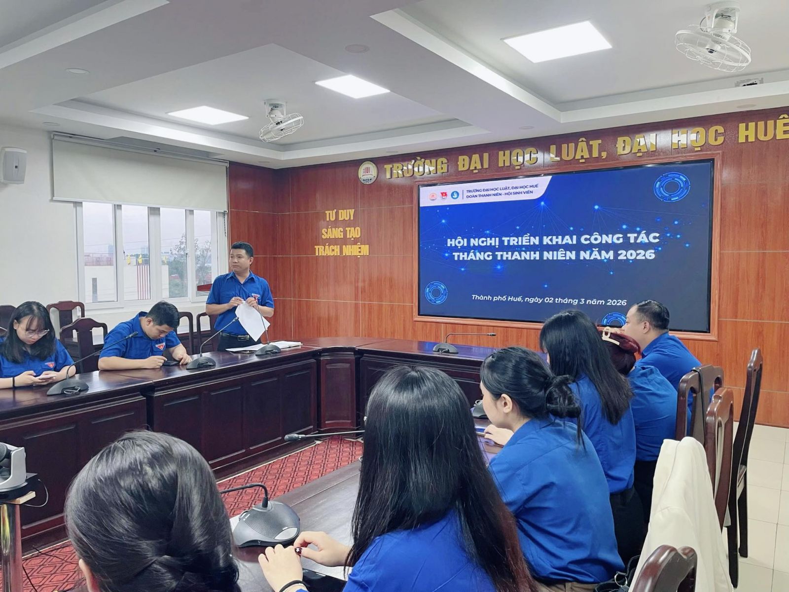 Ngày cập nhật: 02-03-2026Vào lúc 17h30 ngày 02/3/2026, tại phòng Hội thảo nhà A1, Đoàn Thanh niên - Hội Sinh viên Trường Đại học Luật, Đại học Huế đã tổ chức Hội nghị triển khai công tác Tháng Thanh niên năm 2026 trong không khí trang trọng, sôi nổi và đầy quyết tâm.