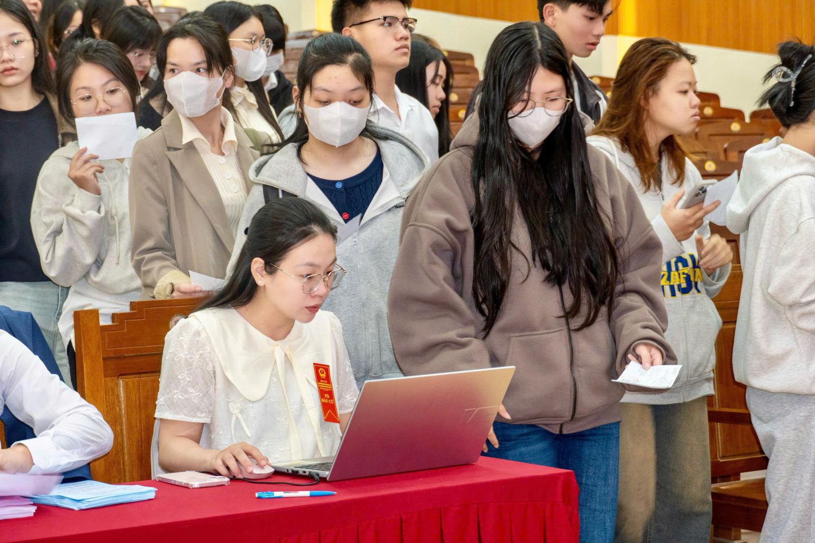 Ngay từ đầu giờ sáng, không khí tại điểm bỏ phiếu diễn ra nghiêm túc, trật tự và đúng quy trình. Trực tiếp PGS.TS Đoàn Đức Lương, Hiệu trưởng nhà trường cũng đã thực hiện quyền bầu cử tại điểm trường cùng với 3.036 cử tri là sinh viên. Đông đảo sinh viên có mặt từ sớm để thực hiện quyền và nghĩa vụ công dân, góp phần tạo nên không khí trang nghiêm, dân chủ của ngày hội bầu cử. Công tác tổ chức tại khu vực bỏ phiếu được triển khai chặt chẽ; việc hướng dẫn cử tri, niêm yết danh sách ứng cử viên và quy trình bỏ phiếu được thực hiện đầy đủ, bảo đảm thuận lợi cho sinh viên tham gia.