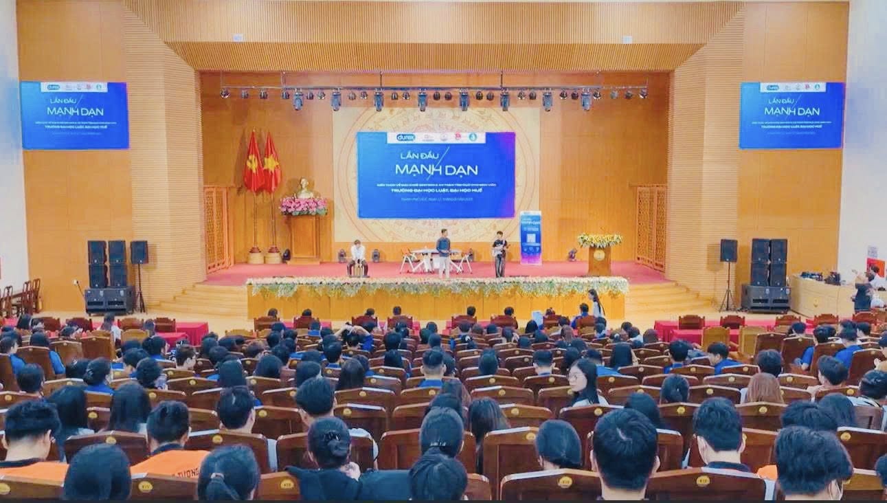 Ngày cập nhật: 13-09-2025Vào lúc 08h00 sáng ngày 13/9/2025 tại Trường Đại học Luật, Đại học Huế đã tổ chức thành công chương trình Talkshow “Lần đầu mạnh dạn”, chương trình mang đến cho sinh viên một không gian mở, nơi mọi người thoải mái chia sẻ và lắng nghe về sức khỏe sinh sản và tình dục an toàn.