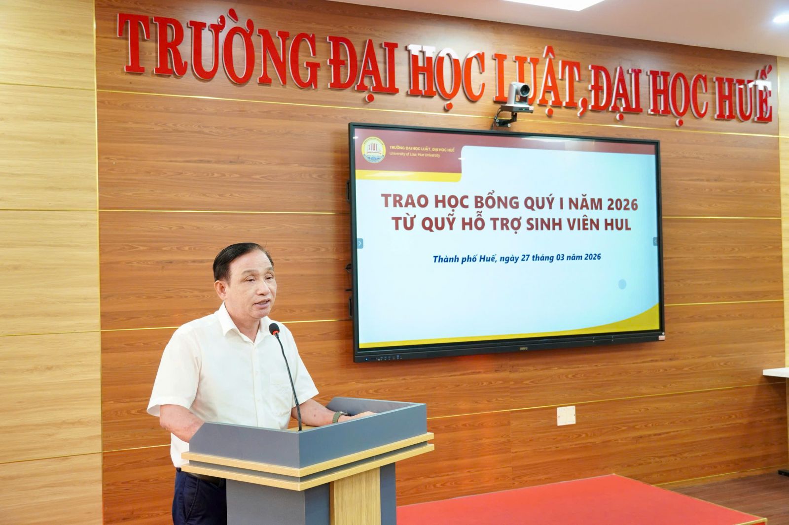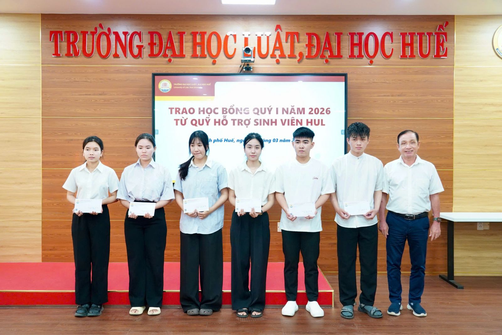Ngày cập nhật: 27-03-2026Chiều ngày 27/3/2026, Trường Đại học Luật, Đại học Huế tổ chức Lễ trao học bổng hỗ trợ sinh viên có hoàn cảnh đặc biệt khó khăn từ Quỹ hỗ trợ sinh viên của Nhà trường.