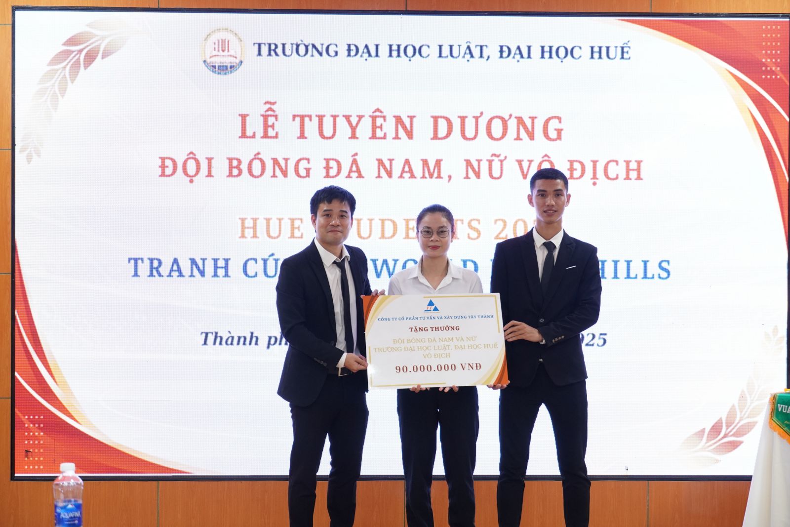 Cũng trong dịp này, nhà tài trợ Công ty Cổ phần Tư vấn và Xây dựng Tây Thành đã trao phần thưởng trị giá 90 triệu đồng cho hai đội bóng.