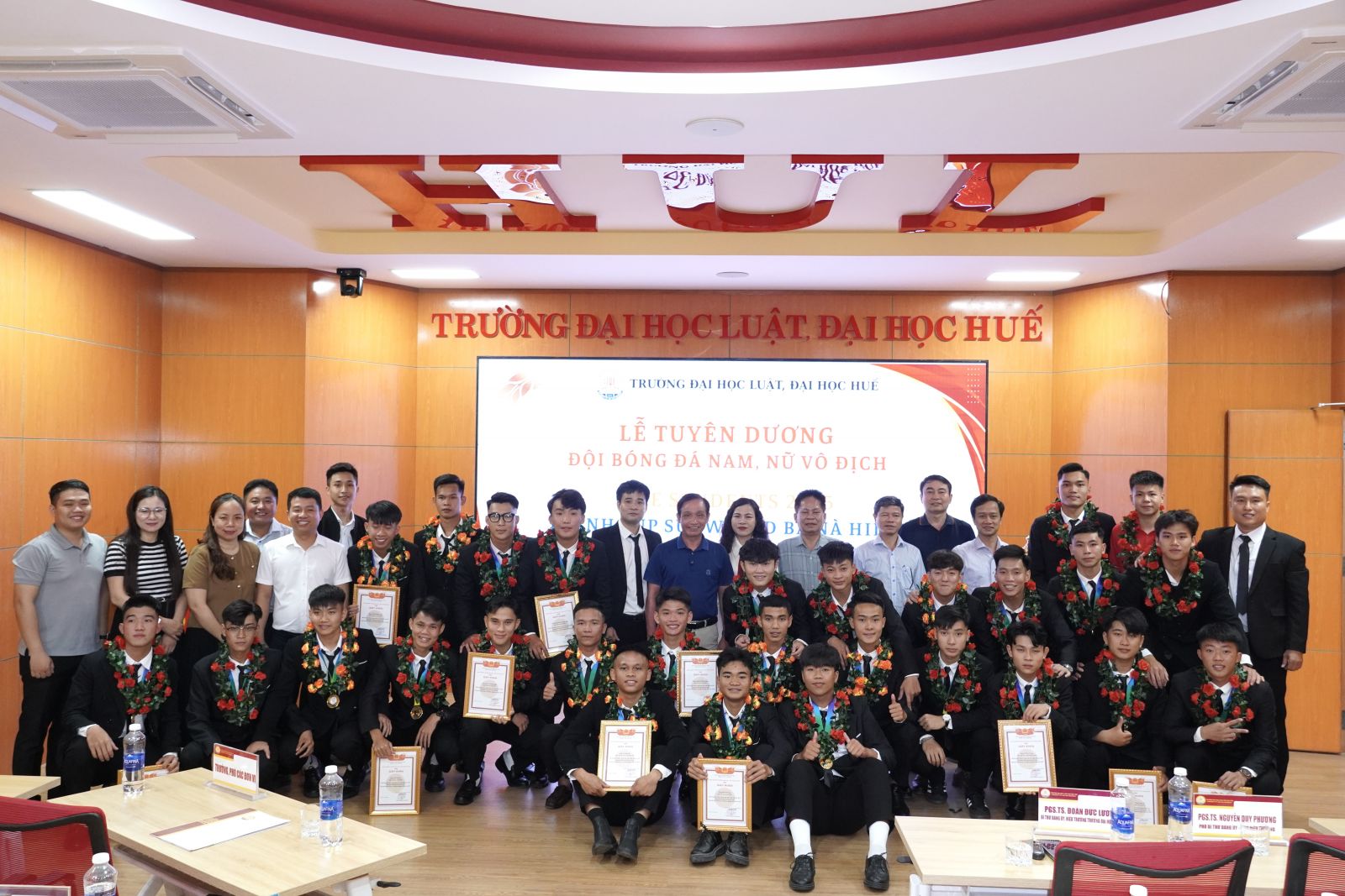 Phát biểu tại buổi lễ, PGS.TS. Nguyễn Duy Phương, Phó Bí thư Đảng uỷ, Phó Hiệu trưởng, Chủ tịch Hội thể thao Đại học và chuyên nghiệp Trường đã gửi lời chúc mừng và biểu dương tinh thần thi đấu ,ý chí quyết tâm cao của các cầu thủ. Thành tích lần này là kết quả của một quá trình rèn luyện, nỗ lực không ngừng của các em sinh viên, là biểu hiện cho tinh thần đoàn kết, bản lĩnh thi đấu và ý chí vươn lên của tuổi trẻ Luật Huế. Qua đó cho thấy sự phát triển toàn diện của sinh viên Nhà trường không chỉ trong lĩnh vực học thuật mà còn trong các hoạt động thể chất và phong trào thanh niên.