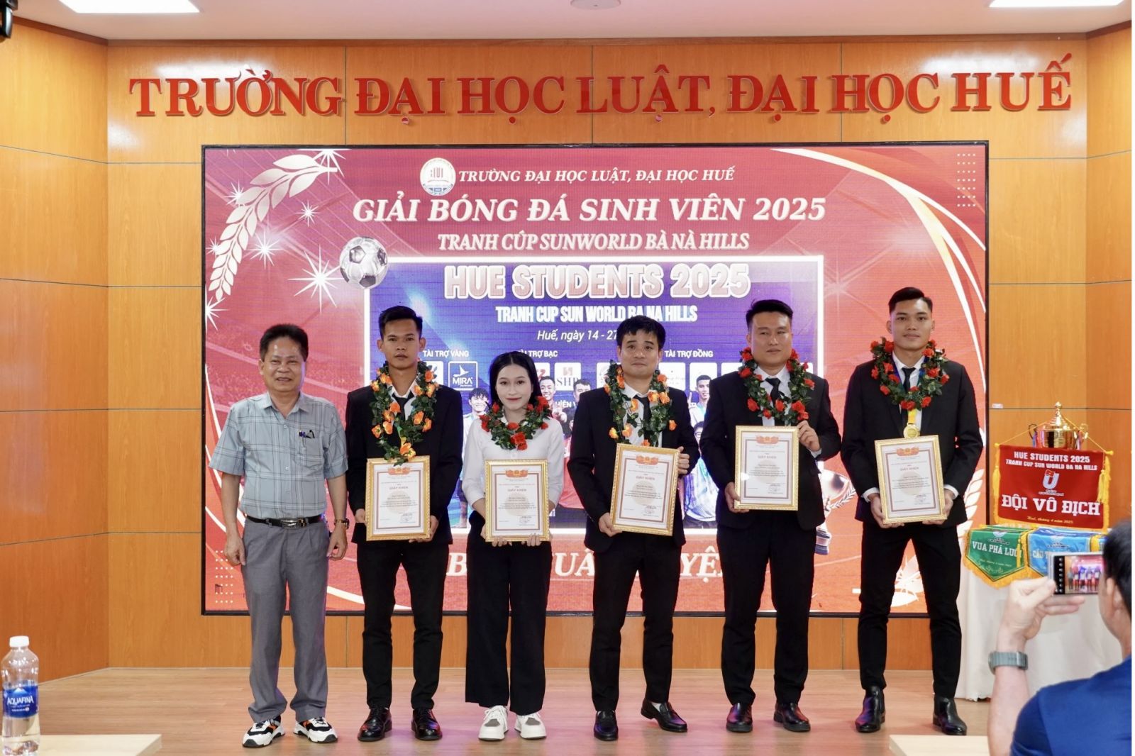 Giải bóng đá Hue Students 2025- Tranh cúp Sunworld Bà Nà Hills diễn ra từ 15/4 đến 27/4 với nhiều trận cầu hấp dẫn, quyết liệt và chất lượng chuyên môn cao. Giải có sự tham gia của 19 đội đến từ các trường đại học thành viên Đại học Huế. Hai đội bóng của Trường Đại học Luật, Đại học Huế đã thể hiện tinh thần thi đấu kiên cường, bản lĩnh và quyết tâm cao. Vượt qua nhiều đối thủ mạnh, cả hai đội đều xuất sắc tiến vào trận chung kết và giành chiến thắng thuyết phục, mang về vinh quang cho Nhà trường.