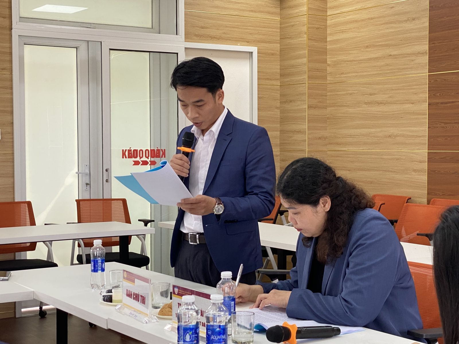 ThS. Nguyễn Văn Phúc, Chủ tịch Công đoàn Khoa luật Dân sự trình bày báo cáo trước hội nghị