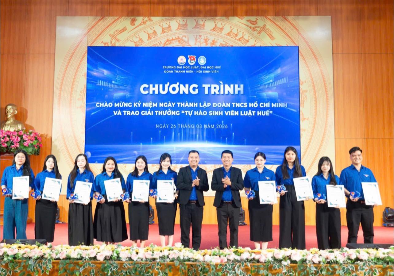 VINH DANH THỦ LĨNH ĐOÀN – HỘI & SINH VIÊN TIÊU BIỂU KHOA LUẬT QUỐC TẾ ĐẠT GIẢI THƯỞNG "TỰ HÀO SINH VIÊN LUẬT HUẾ" NĂM 2026