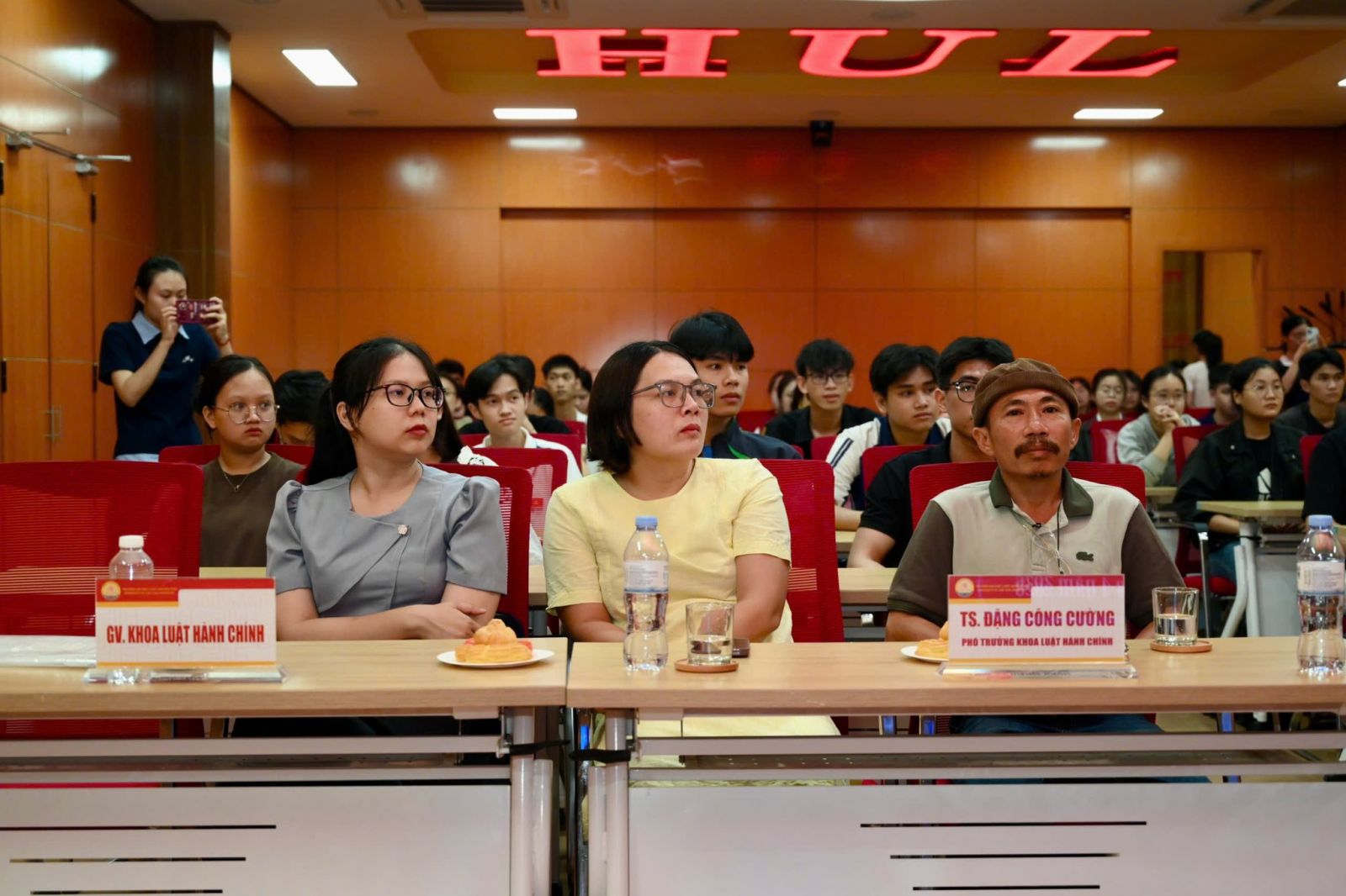 Về phía Khoa Luật Hành Chính có TS. Lý Nam Hải - Đảng uỷ viên, Trưởng khoa Luật Hành Chính; TS. Đặng Công Cường – Phó Trưởng khoa Luật Hành Chính; TS. Mai Thị Diệu Thuý - Trưởng Chương trình Đào tạo Đại học Khoa Luật Hành Chính; TS. Nguyễn Thị Nữ - Giảng viên Khoa Luật Hành Chính; ThS. Trần Thị Diệu Hà - Nguyên Bí thư Liên Chi đoàn Khoa Luật Hành chính;Cùng Quý Thầy Cô Giảng viên Khoa Luật Hành chính.