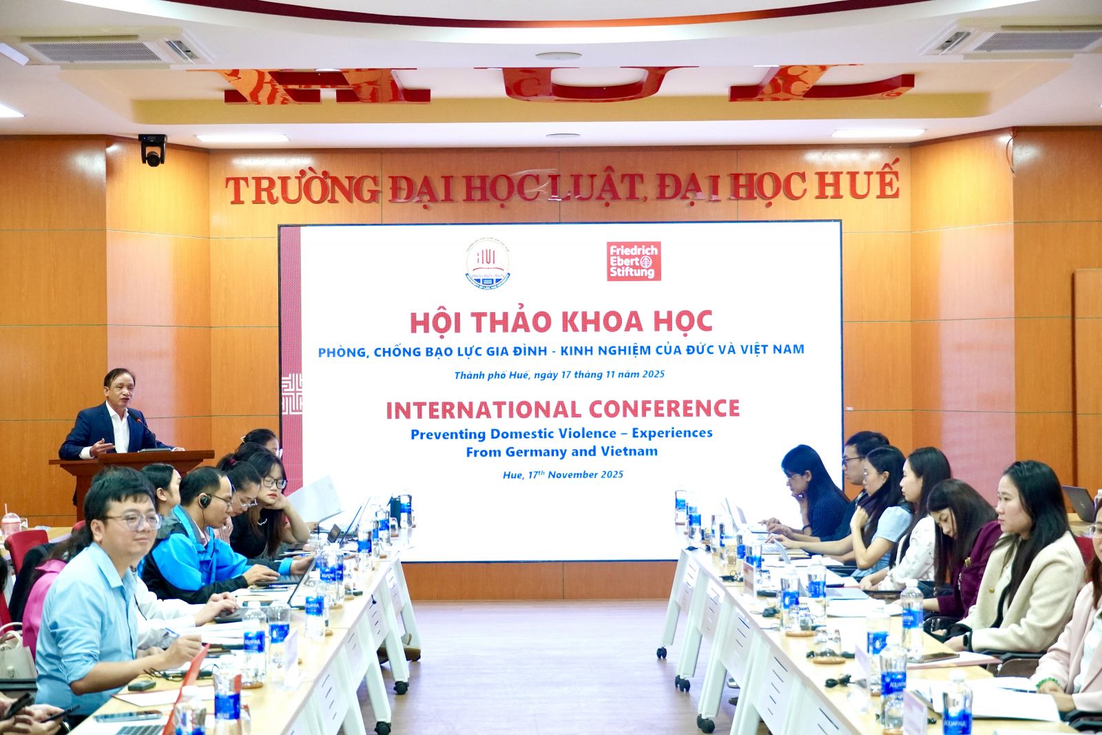 In celebration of the 81st anniversary of the founding of the Vietnam People's Army (December 22, 1944 – December 22, 2025) and the 36th anniversary of the All-People's National Defense Day (December 22, 1989 – December 22, 2025), on the afternoon of December 19, 2025, the Veterans Association of the University of Law, Hue University, organized a floral tribute and incense-offering ceremony to commemorate heroic martyrs at the Hue City Martyrs' Cemetery, followed by a sports tournament.