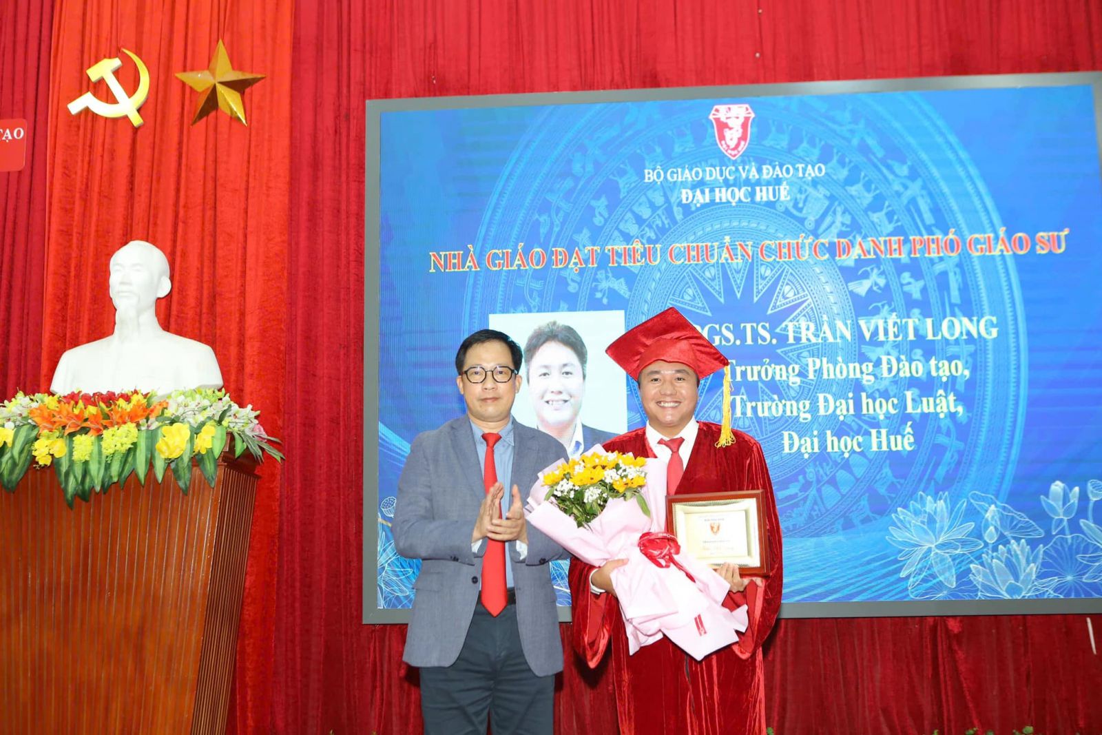 Tại lễ công bố quyết định và trao giấy chứng nhận, Giám đốc Đại học Huế biểu dương những cống hiến không ngừng nghỉ và thành tích xuất sắc của các nhà giáo. Giám đốc Đại học Huế tặng giấy khen và phần thưởng cho PGS.TS. Trần Viết Long, 01 trong 05 nhà giáo được công nhận đạt tiêu chuẩn chức danh Phó Giáo sư trước 40 tuổi.