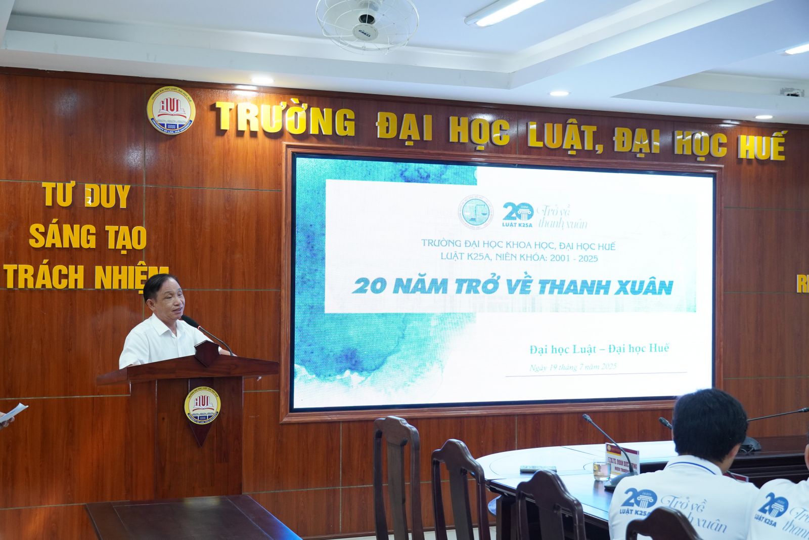 Tham dự buổi gặp mặt có PGS.TS. Đoàn Đức Lương, Hiệu trưởng Trường Đại học Luật, Đại học Huế. Trong lời phát biểu thân tình, thầy gửi lời chúc mừng và tri ân sâu sắc đến các cựu sinh viên lớp K25A, đồng thời chia sẻ những dấu ấn phát triển nổi bật của Nhà trường trong những năm gần đây.