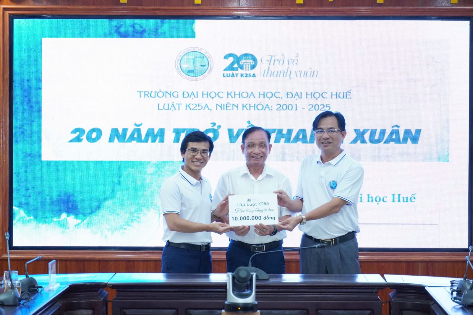 Dịp này, lớp Luật K25A cũng đã trao 10 triệu đồng dành cho quỹ học bổng khuyến học của Nhà trường cùng những tình cảm quý báu, góp phần vun đắp truyền thống và tinh thần gắn kết giữa các thế hệ sinh viên.