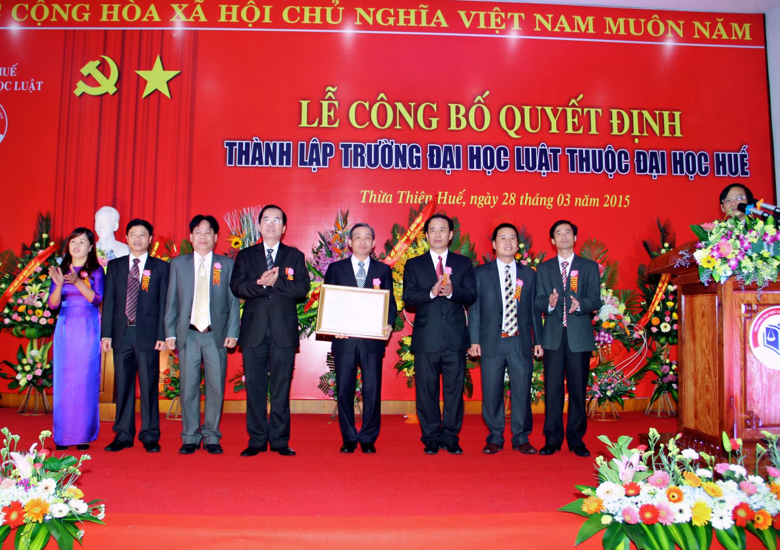 Ngày cập nhật: 12-04-2025Lễ công bố Quyết định thành lập Trường Đại học Luật, Đại học Huế (năm 2015).