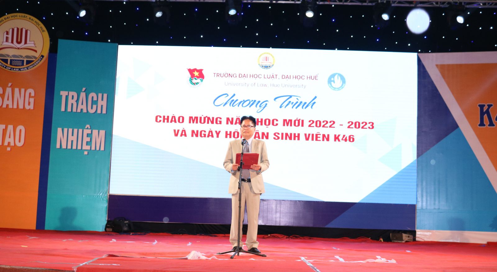 Ngày cập nhật: 24-10-2022Ngày 22/10/2022, Trường Đại học Luật, Đại học Huế long trọng tổ chức Chương trình chào mừng năm học mới 2022-2023 và Ngày hội Tân sinh viên K46.