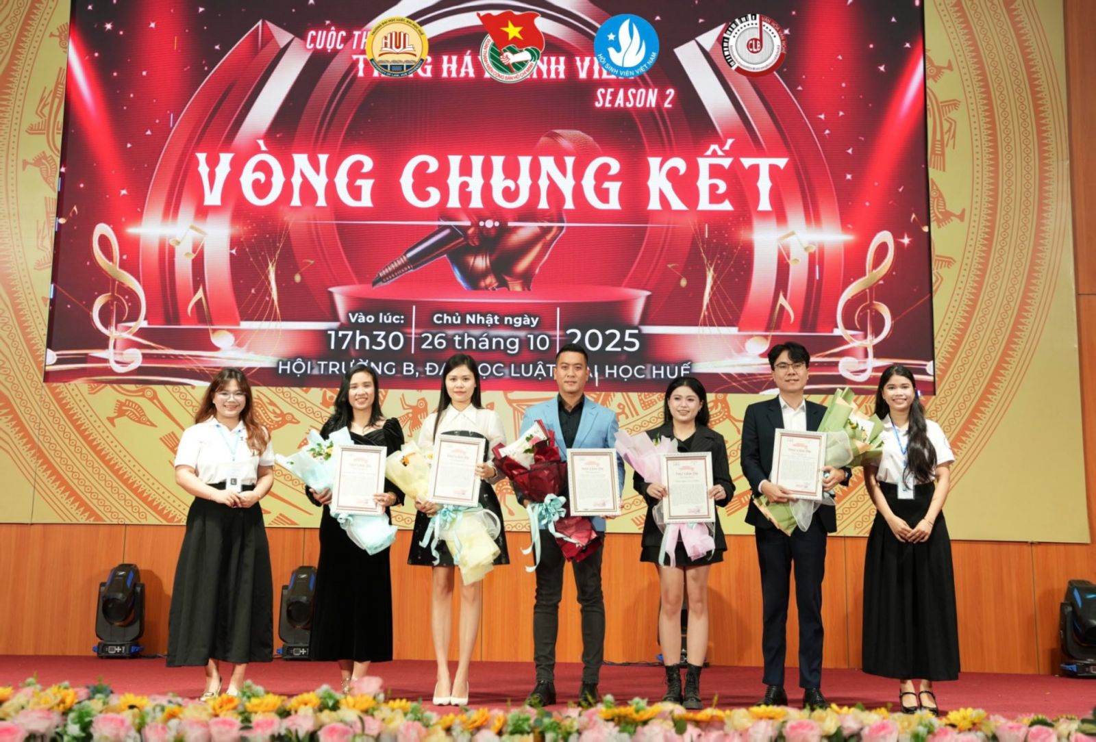 Ngày cập nhật: 26-10-2025Chiều ngày 26/10/2025 tại Hội trường B, Trường Đại học Luật, Đại học Huế đã diễn ra đêm chung kết cuộc thi ”Tiếng hát sinh viên lần thứ 2”. Đến tham dự đêm chung kết có sự hiện diện của quý vị khách quý, quý vị đại biểu, quý thầy cô giáo.