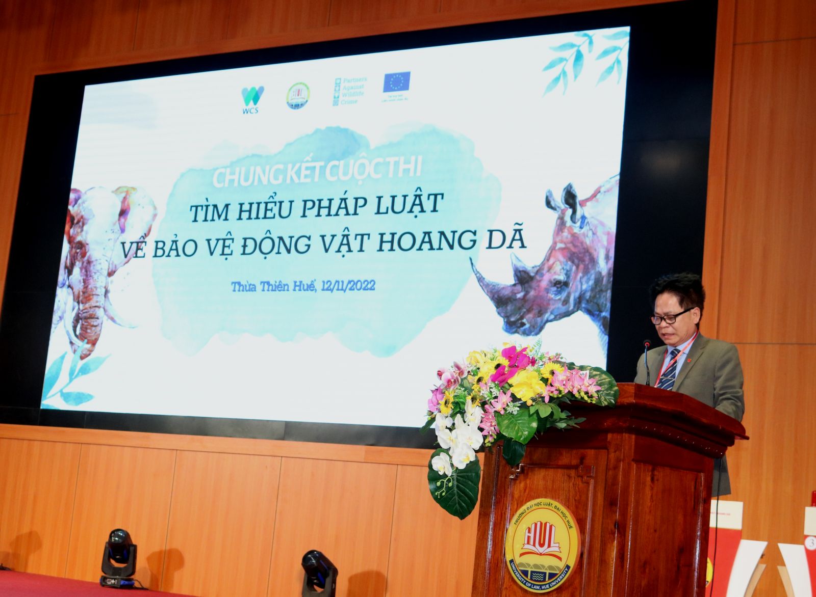 Phát biểu tại Cuộc thi, PGS.TS. Nguyễn Duy Phương, Phó Hiệu trưởng đã chia sẻ: Cuộc thi “Tìm hiểu về pháp luật Bảo vệ động vật hoang dã” do Trường Đại học Luật, Đại học Huế phối hợp đồng tổ chức với Tổ chức WCS tại Việt Nam. Trường Đại học Luật, Đại học Huế và Tổ chức WCS tại Việt Nam là 02 đơn vị đã tiến hành triển khai nhiều hoạt động liên quan đến lĩnh vực bảo vệ động vật hoang dã dành cho giảng viên, sinh viên của Trường Đại học Luật, Đại học Huế và các Cán bộ đang công tác trong lĩnh vực liên quan trên địa bàn tỉnh Thừa Thiên Huế.