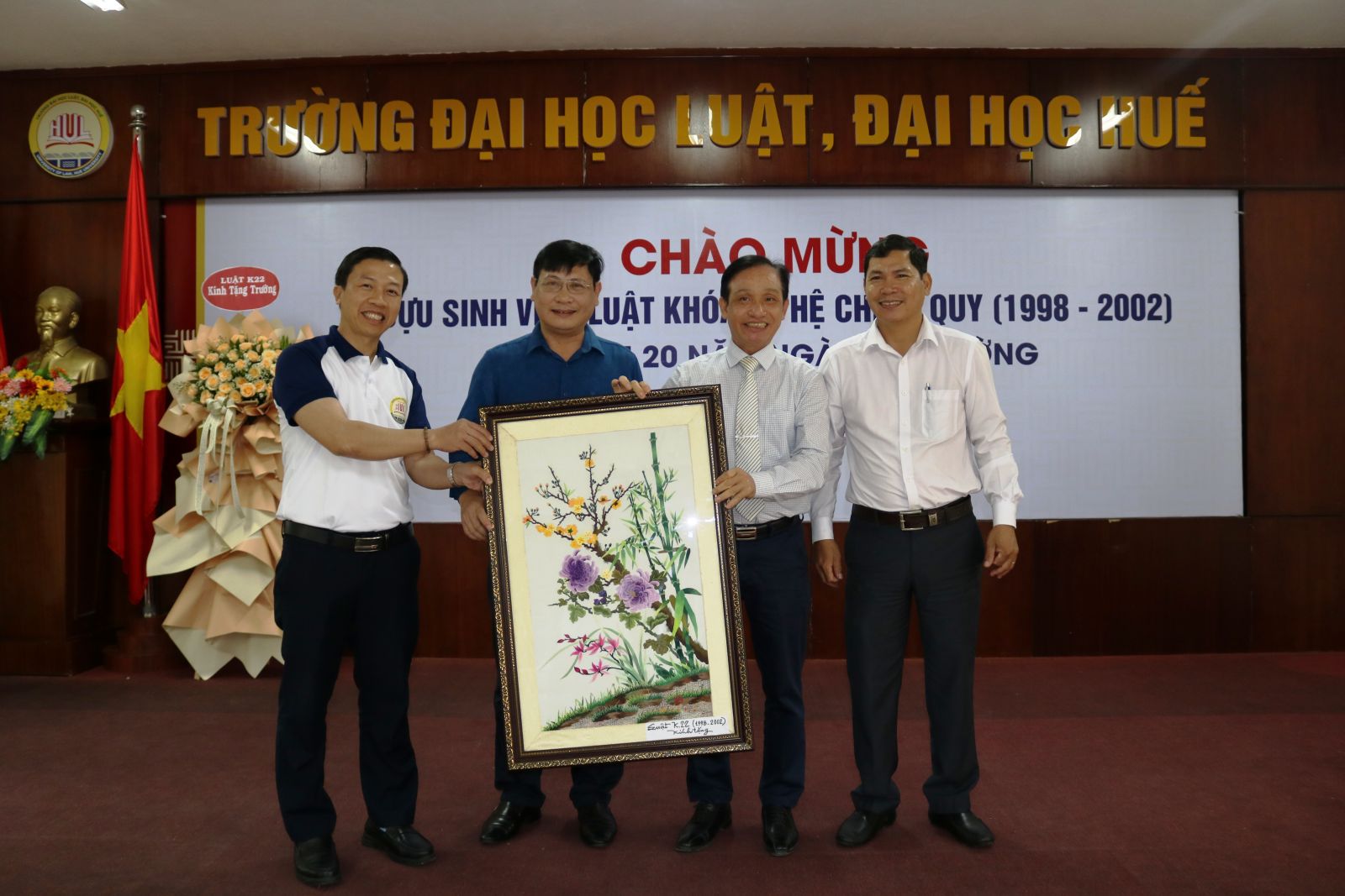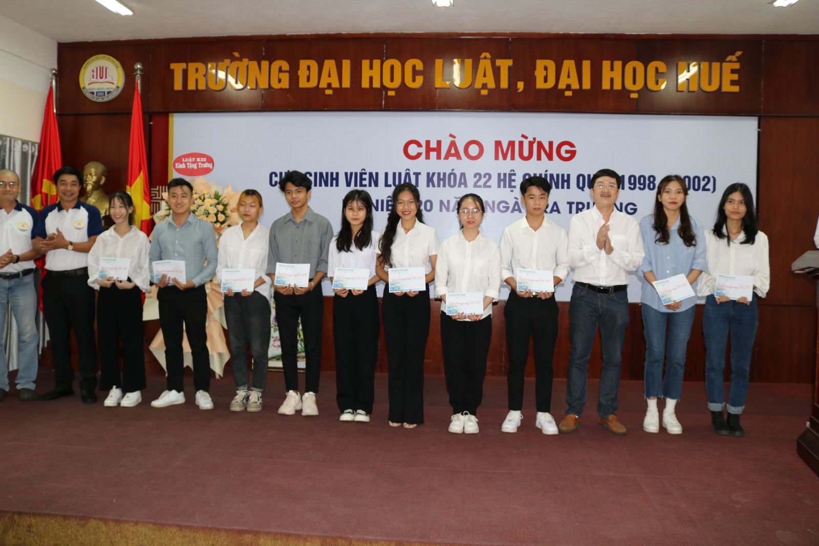 Ngày cập nhật: 02-07-2022Ngày 02 tháng 7 năm 2022 Cựu sinh viên Lớp Luật K22 hệ chính quy niên khóa (1998-2022) tổ chức buổi gặp mặt kỷ niệm 20 năm ngày ra trường tại trường Đại học Luật, Đại học Huế.