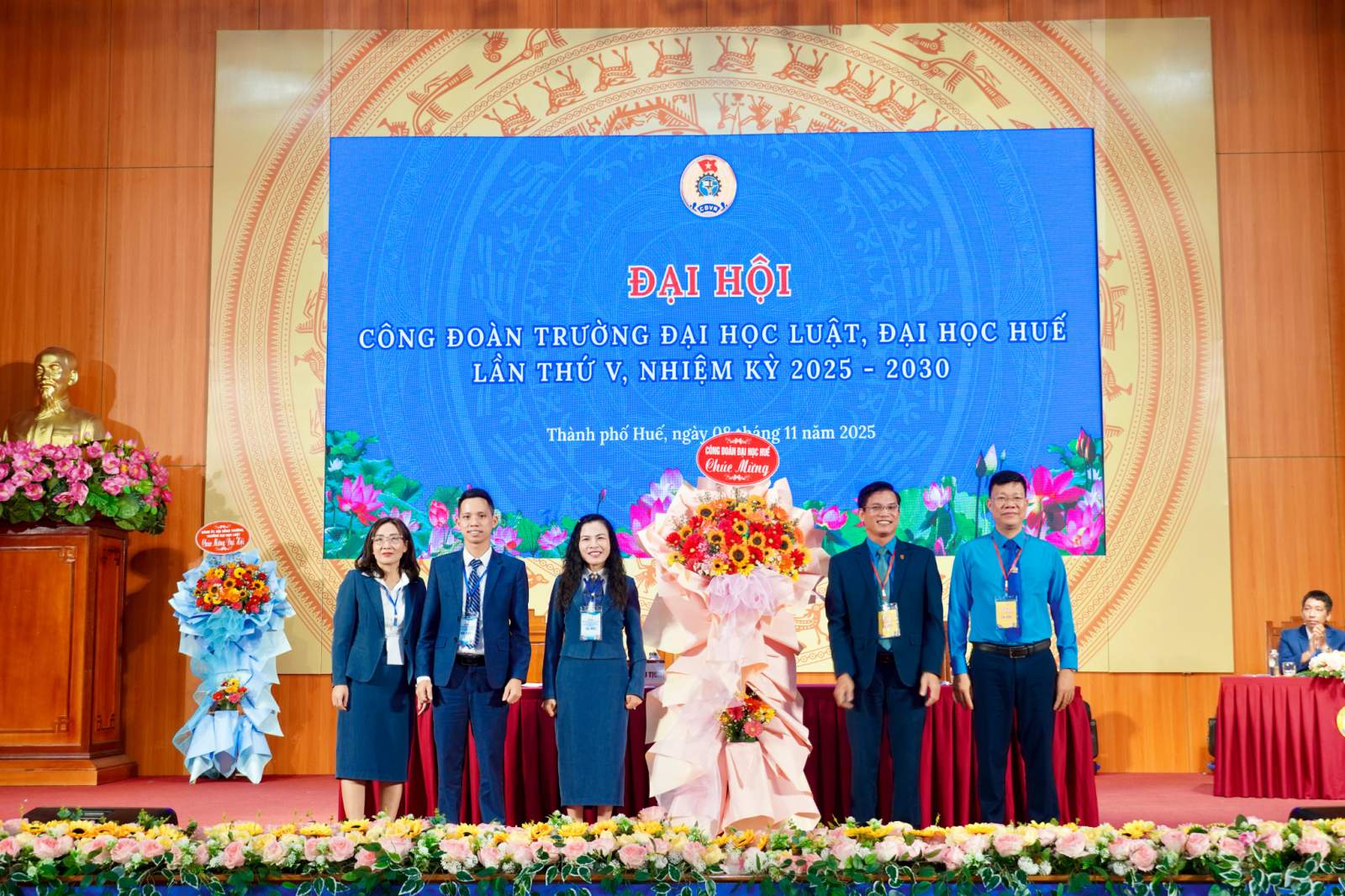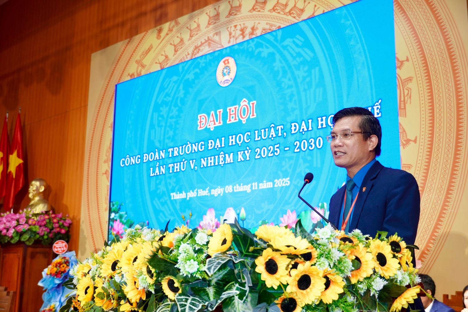 Cũng tại Đại hội, PGS.TS. Đoàn Đức Lương, Hiệu trưởng Trường Đại học Luật, Đại học Huế bày tỏ sự trân trọng và cảm ơn sự quan tâm, chỉ đạo sâu sát của Công đoàn Đại học Huế, đồng thời ghi nhận vai trò tích cực của Công đoàn Trường trong việc đồng hành cùng Nhà trường hoàn thành tốt các nhiệm vụ được giao. Hiệu trưởng nhấn mạnh, trong bối cảnh đổi mới giáo dục đại học và hội nhập quốc tế, Công đoàn cần tiếp tục là cầu nối tin cậy giữa lãnh đạo và người lao động, phát huy tinh thần dân chủ, đoàn kết, chăm lo tốt hơn đời sống vật chất và tinh thần cho viên chức, người lao động; đồng thời khơi dậy tinh thần cống hiến, sáng tạo trong mỗi đoàn viên, góp phần xây dựng Trường Đại học Luật, Đại học Huế ngày càng phát triển vững mạnh, xứng đáng là trung tâm đào tạo, nghiên cứu pháp lý hàng đầu khu vực miền Trung – Tây Nguyên.