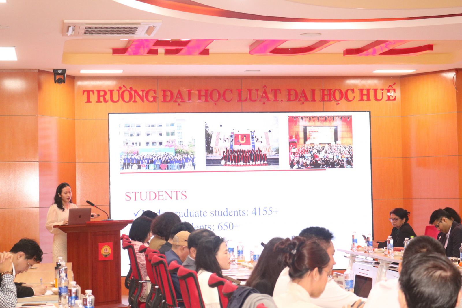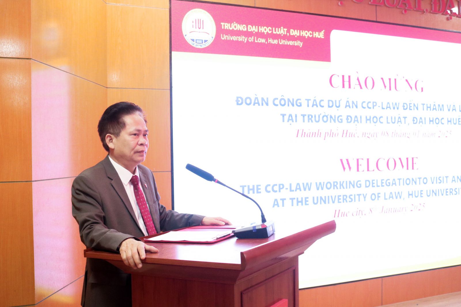 Về phía đại học Huế có PGS.TS. Nguyễn Xuân Huy, Phó Trưởng Ban KHCN&QHQT Đại học Huế. Tham dự buổi đón tiếp về phía Trường Đại học Luật, Đại học Huế có PGS.TS. Nguyễn Duy Phương, Phó Bí thư Đảng uỷ, Phó Hiệu trưởng cùng trưởng các đơn vị trong Nhà trường.