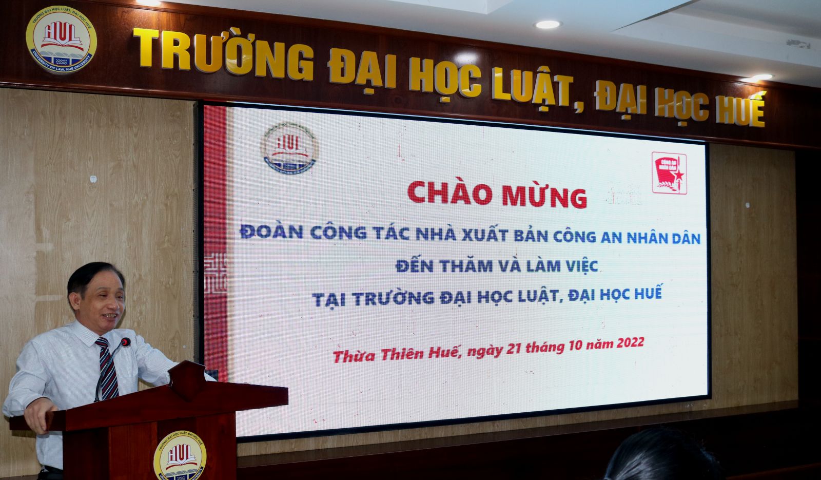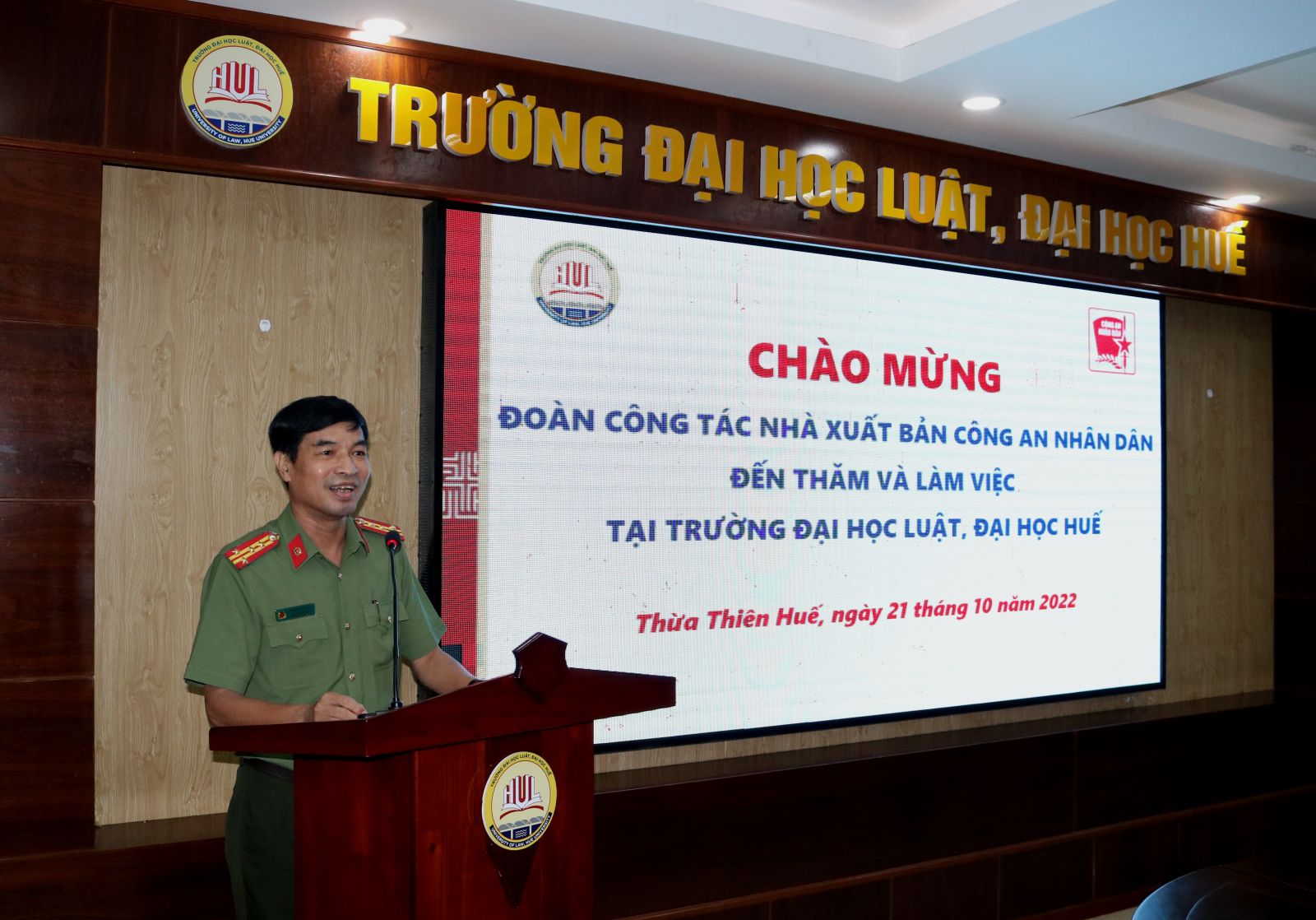 Phát biểu tại buổi làm việc, PGS. TS. Đoàn Đức Lương, Hiệu trưởng và Đ/c Đại tá Trần Cao Kiều, Phó Cục Truyền thông Công an nhân dân – Giám đốc- Tổng biên tập, giới thiệu tổng quan về 2 hai đơn vị. Qua đó, mong muốn trong thời gian tới có sự kết nối chặt chẽ để cùng nhau chia sẻ, hợp tác lâu dài và bền vững hơn trong việc xuất bản sách, giáo trình, các ấn phẩm,.. của trường Đại học Luật, Đại học Huế.