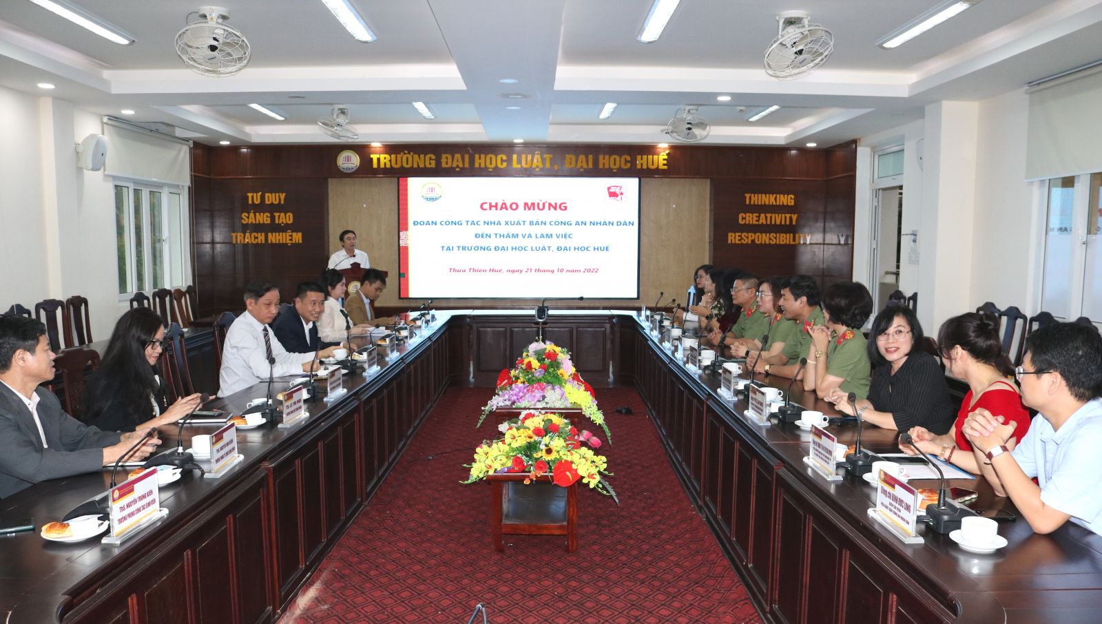 Ngày cập nhật: 21-10-2022Ngày 21/10/2022, Trường Đại học Luật, Đại học Huế làm việc với NXB Công an nhân dân về triển khai kế hoạch hợp tác trong thời gian tới giữa 02 đơn vị.