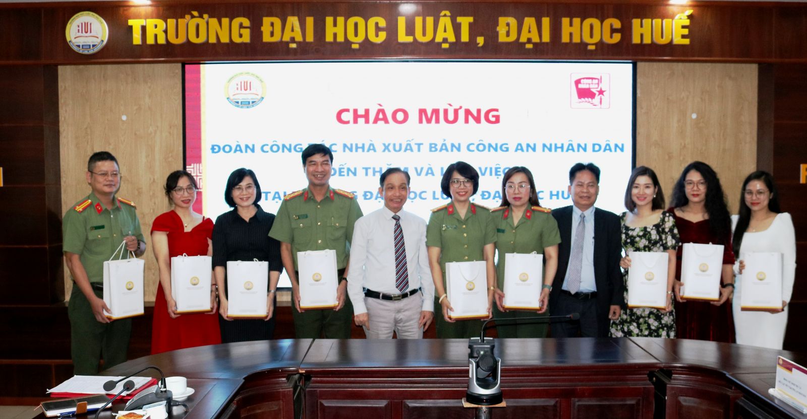 Tham gia buổi làm việc, về phía NXB Công an nhân dân có Đ/c Đại tá Trần Cao Kiều, Phó Cục Truyền thông Công an nhân dân – Giám đốc- Tổng biên tập; Đ/c Thượng tá Phạm Thị Mỹ Nương, Phó Giám đốc – Phó Tổng Biên tập và cùng các thành viên của Đoàn. Về phía Trường Đại học Luật, Đại học Huế có PGS.TS. Đoàn Đức Lương, Hiệu trưởng; PGS.TS. Nguyễn Duy Phương, Phó Hiệu trưởng; TS. Nguyễn Hồng Sơn, Chủ tịch Hội đồng trường; Trưởng, phó các phòng và Giám đốc Trung tâm Thông tin - Thư viện.