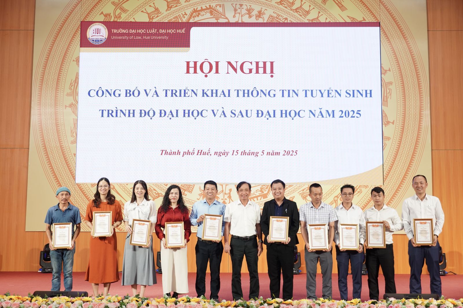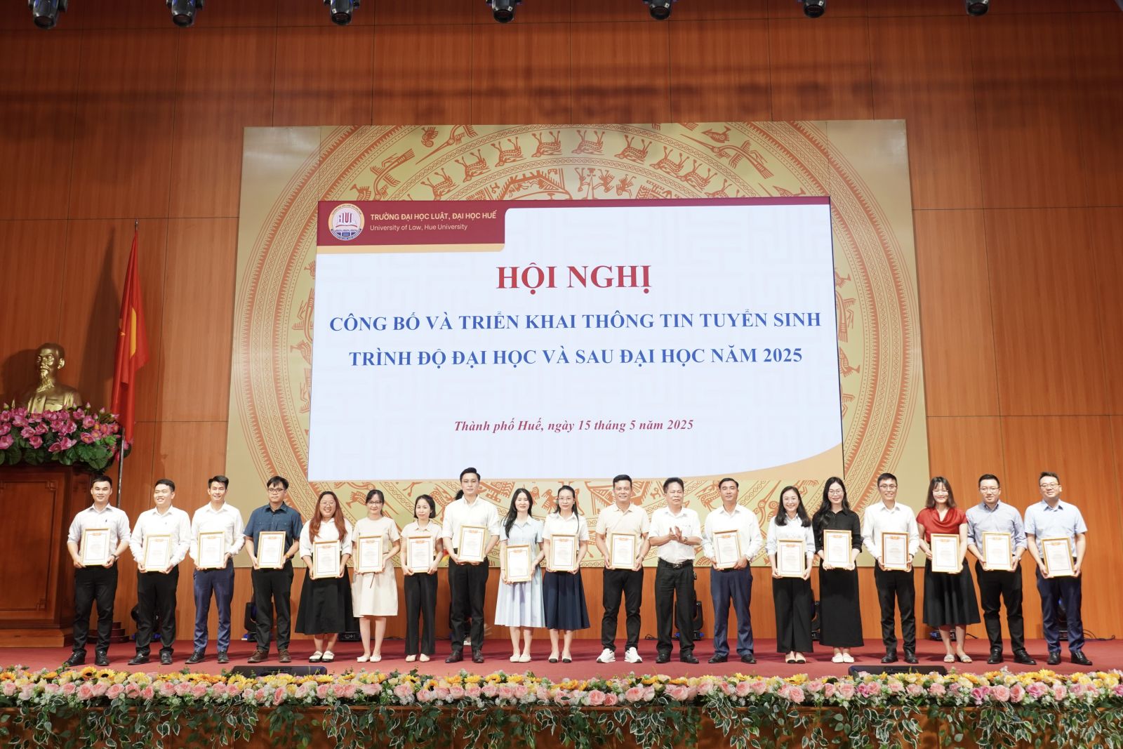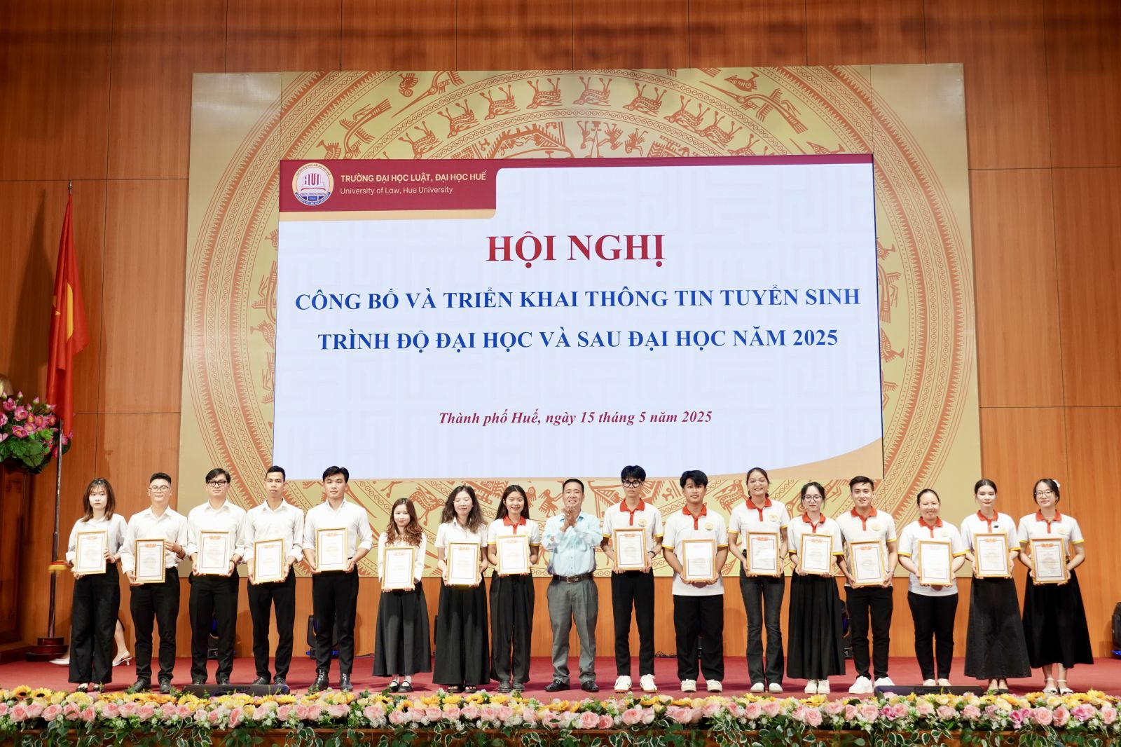 Dịp này, Nhà trường quyết định khen thưởng cho 11 tập thể và 39 cá nhân có thành tích xuất sắc trong công tác tuyển sinh đại học chính quy năm 2024. Đây là sự ghi nhận xứng đáng cho những nỗ lực, cống hiến của các thầy cô giáo, cán bộ, sinh viên trong việc lan tỏa hình ảnh và công tác tuyển sinh của Trường Đại học Luật, Đại học Huế đối với người học trong cả nước.
