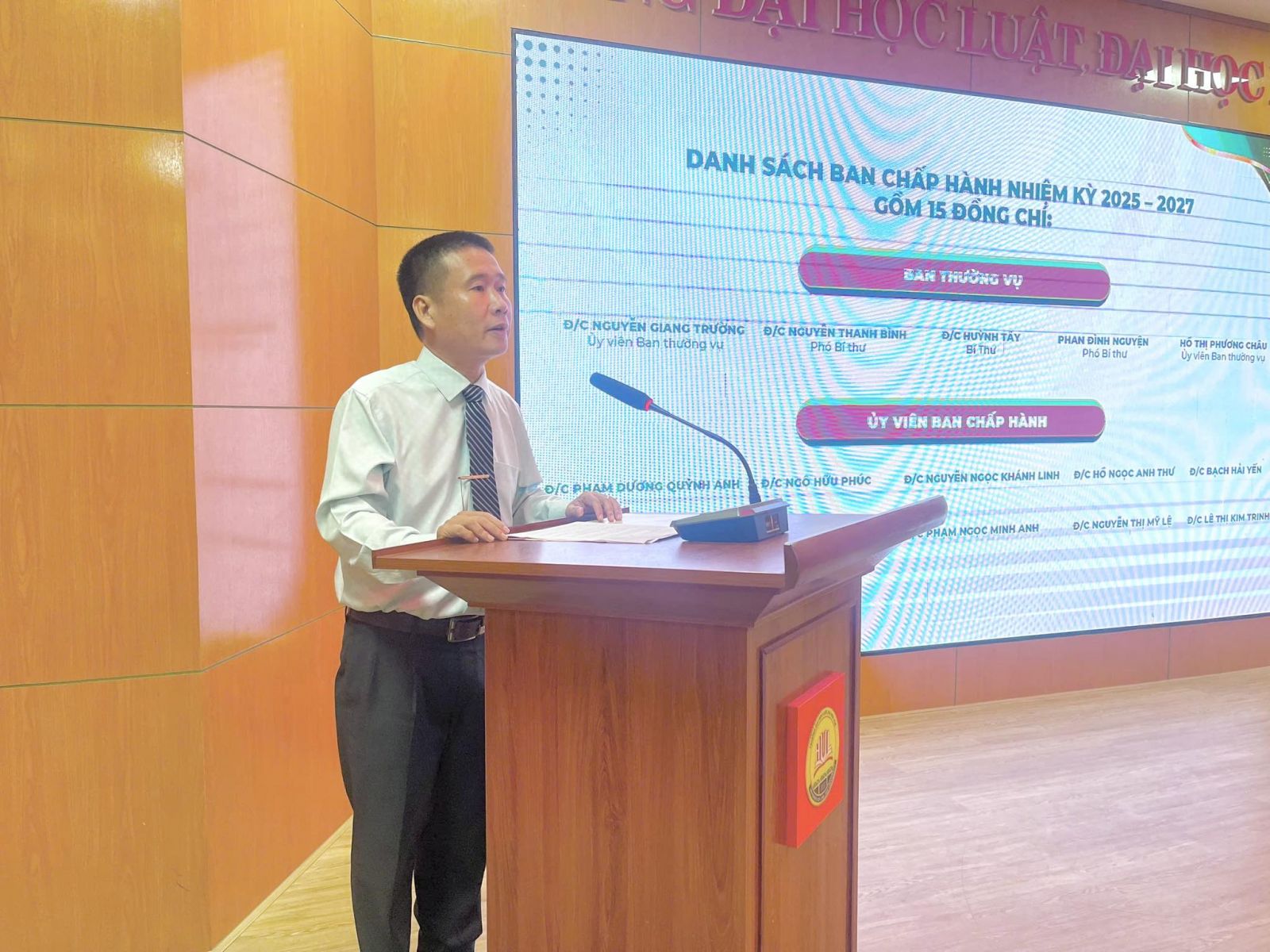 Phát biểu chỉ đạo tại Hội nghị, đại diện Đảng ủy, Ban Giám hiệu Nhà trường và Ban Thường vụ Đoàn Đại học Huế đã ghi nhận, biểu dương những thành tích mà Đoàn Trường đã đạt được trong nhiệm kỳ vừa qua; đồng thời bày tỏ sự tin tưởng, kỳ vọng vào Ban Chấp hành khóa mới sẽ tiếp tục phát huy tinh thần xung kích, sáng tạo, góp phần khẳng định vị thế và uy tín của tuổi trẻ Trường Đại học Luật, Đại học Huế trong giai đoạn mới.