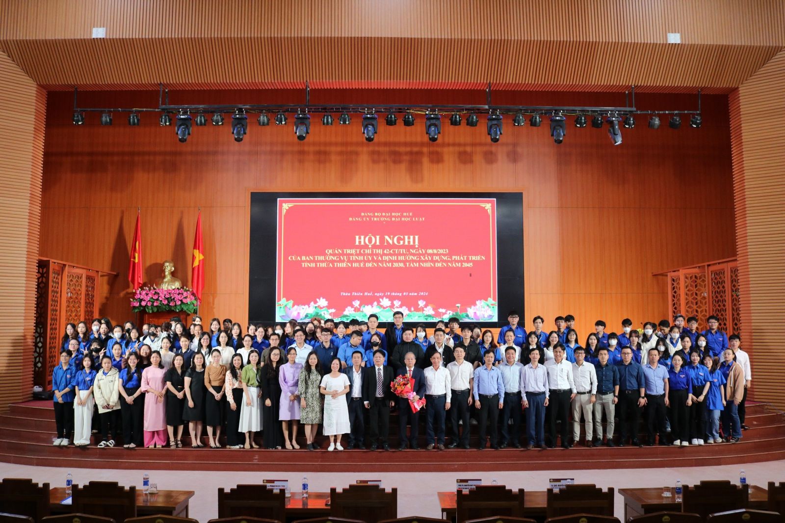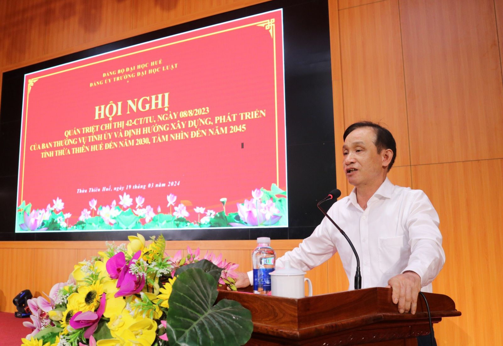 Ngày cập nhật: 19-03-2024Sáng ngày 19 tháng 3 năm 2024, Trường Đại học Luật tổ chức Hội nghị quán triệt Chỉ thị 42-CT/TU, ngày 08/8/2023 của Ban Thường vụ Tỉnh uỷ và thông tin định hướng xây dựng, phát triển tỉnh Thừa Thiên Huế đến năm 2030, tầm nhìn đến năm 2045.
