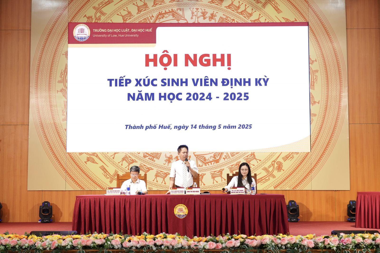Ngày cập nhật: 14-05-2025Chiều ngày 14/5/2025, Trường Đại học Luật, Đại học Huế tổ chức Hội nghị tiếp xúc sinh viên định kỳ – hoạt động quan trọng nhằm thể hiện sự quan tâm và đồng hành của Nhà trường với người học.