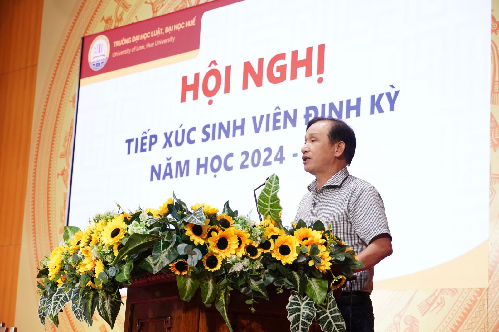 Phát biểu khai mạc, PGS.TS. Đoàn Đức Lương, Hiệu trưởng khẳng định hội nghị là dịp để lắng nghe, tiếp nhận ý kiến, phản ánh, kiến nghị của sinh viên liên quan đến quá trình học tập, rèn luyện và sinh hoạt tại trường. Qua đó, Nhà trường có cơ sở để rà soát, điều chỉnh, hoàn thiện các hoạt động đào tạo, hỗ trợ sinh viên, đồng thời thể hiện rõ vai trò đồng hành cùng người học trong suốt quá trình học tập và phát triển tại Trường Đại học Luật, Đại học Huế.