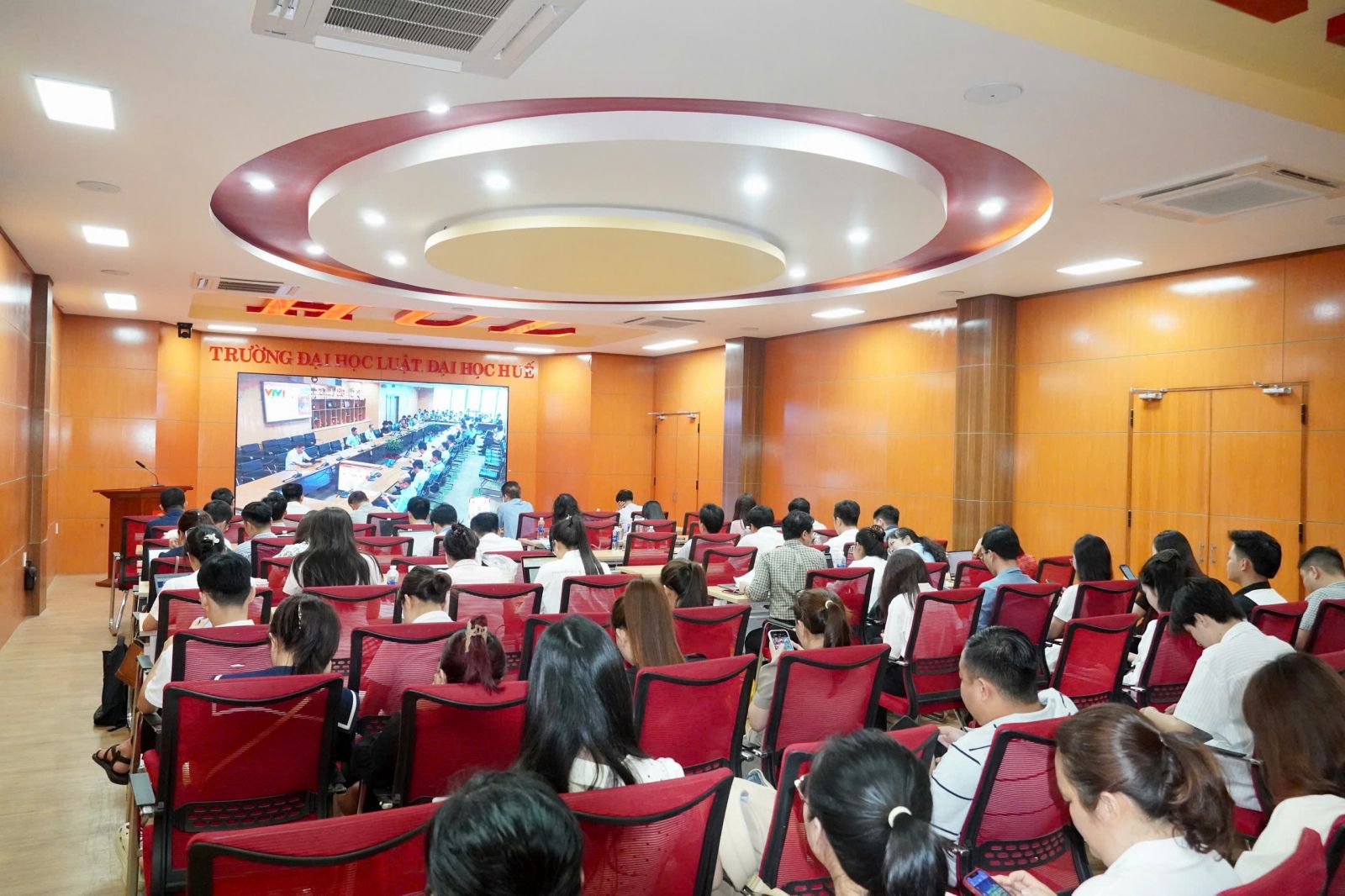 Tại điểm cầu Đại học Huế có sự tham dự của đồng chí Nguyễn Hồng Sơn, Bí thư Đảng ủy. Tại điểm cầu Trường Đại học Luật, Đại học Huế, tham dự hội nghị có đồng chí Đoàn Đức Lương, Ủy viên Ban Thường vụ Đảng ủy Đại học Huế, Phó Bí thư Đảng ủy, Hiệu trưởng Nhà trường; đồng chí Nguyễn Sơn Hà, Ủy viên Ban Thường vụ Đảng ủy, Trưởng phòng Khảo thí và Bảo đảm chất lượng giáo dục; đồng chí Nguyễn Duy Phương, nguyên Phó Bí thư Đảng ủy; cùng các đồng chí trong Ban Chấp hành Đảng bộ, lãnh đạo các đơn vị và đông đảo đảng viên, viên chức, người lao động của Nhà trường.