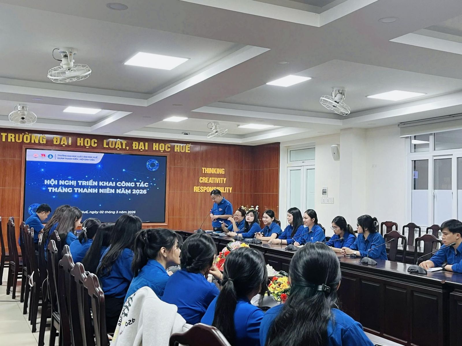 Ngày cập nhật: 02-03-2026Vào lúc 17h30 ngày 02/3/2026, tại phòng Hội thảo nhà A1, Đoàn Thanh niên - Hội Sinh viên Trường Đại học Luật, Đại học Huế đã tổ chức Hội nghị triển khai công tác Tháng Thanh niên năm 2026 trong không khí trang trọng, sôi nổi và đầy quyết tâm.
