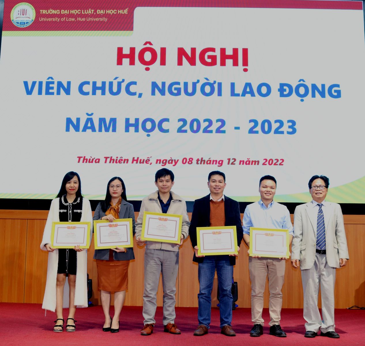 TS. Bùi Văn Lợi, Phó Giám đốc Đại học Huế trao giấy khen cho giảng viên có thành tích trong NCKH