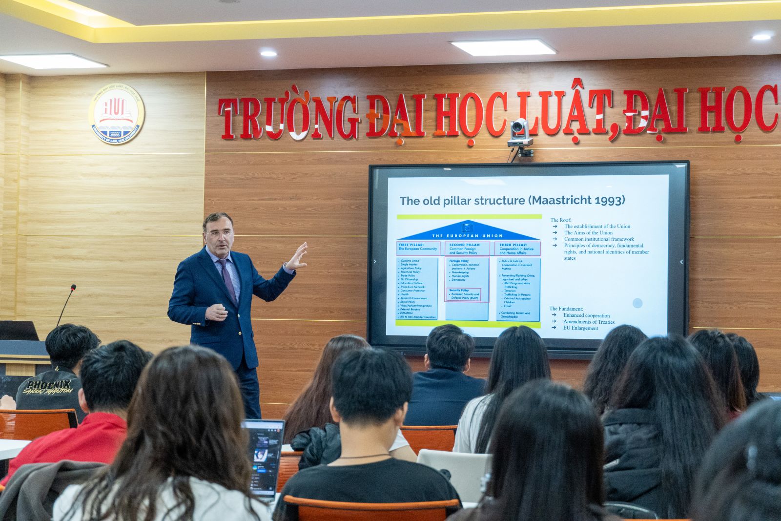 Chương trình được giảng dạy và trao đổi học thuật trực tiếp bởi TS. Piotr Uhma – Giảng viên Luật Quốc tế Công tại Viện Luật, Kinh tế và Hành chính, Đại học Ủy ban Giáo dục Quốc gia (Krakow, Cộng hòa Ba Lan). Với kinh nghiệm nghiên cứu và giảng dạy trong lĩnh vực luật quốc tế và pháp luật Liên minh Châu Âu, TS. Piotr Uhma đã mang đến cho sinh viên nhiều góc nhìn học thuật mới mẻ, gắn với thực tiễn của tiến trình hội nhập khu vực.