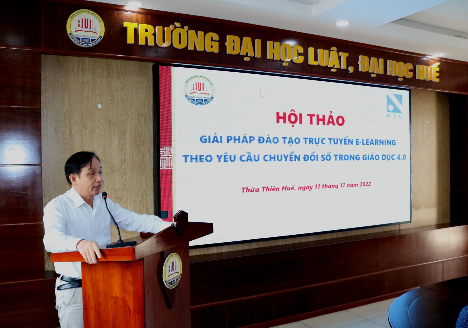 Ngày cập nhật: 11-11-2022Ngày 11/11/2022, Trường Đại học Luật, Đại học Huế phối hợp với Công ty TNHH Khoa Trí tổ chức Hội thảo Giải pháp đào tạo trực tuyến (E-learning) theo yêu cầu chuyển đổi số trong giáo dục 4.0.