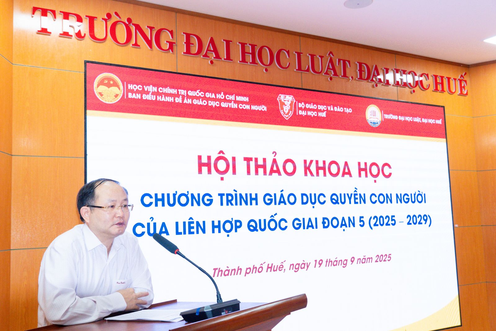 Ngày cập nhật: 19-09-2025Ngày 19/9/2025, Trường Đại học Luật, Đại học Huế phối hợp với Viện Quyền con người, Học viện Chính trị Quốc gia Hồ Chí Minh tổ chức Hội thảo khoa học Quốc gia với chủ đề: “Chương trình giáo dục quyền con người của Liên hợp quốc giai đoạn 5 (2025 – 2029)”.