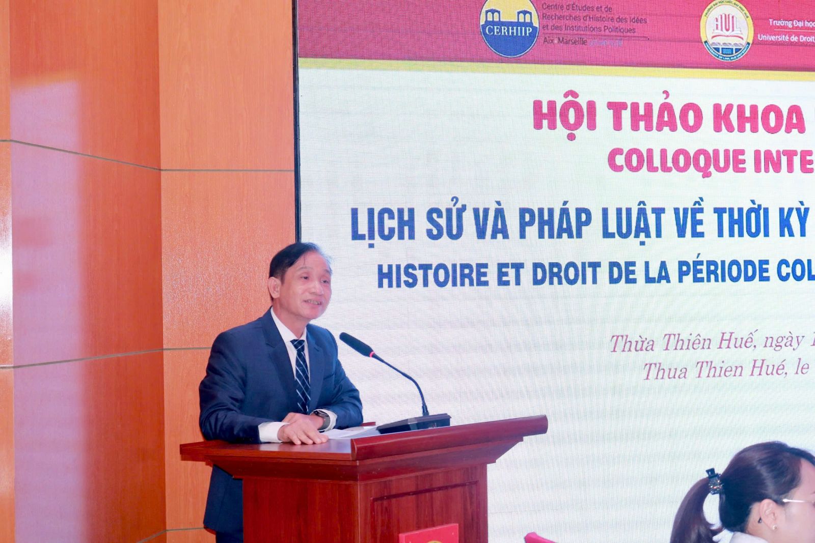 Phát biểu khai mạc Hội thảo, PGS.TS Đoàn Đức Lương, Hiệu trưởng Trường Đại học Luật, Đại học Huế nhấn mạnh: Chủ đề Hội thảo mang tính chất quan trọng, vì thời kỳ Pháp thuộc đã để lại dấu ấn sâu sắc trong lịch sử pháp luật Việt Nam. Đây là giai đoạn chứng kiến sự giao thoa văn hóa Đông-Tây, đánh dấu sự chuyển mình của nền văn hóa pháp lý Việt Nam từ truyền thống Nho giáo sang sự ảnh hưởng mạnh mẽ của văn hóa pháp lý châu Âu, đặc biệt là từ Pháp. Giai đoạn này đã có những đóng góp nhất định trong củng cố, phát triển “Luật tư” ở Việt Nam mà thể hiện rõ nhất là những dấu ấn của truyền thống Dân luật châu Âu trong bối cảnh pháp lý hiện tại.