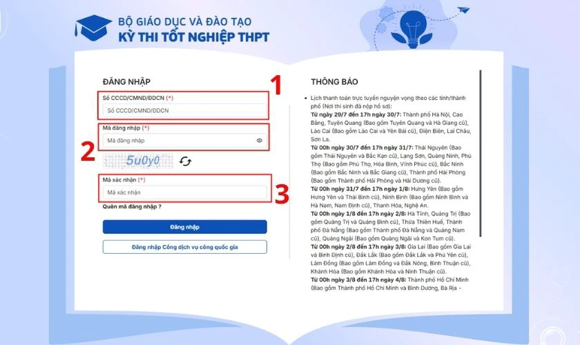 Bước 2: Điền số CCCD, mã đăng nhập, mã xác nhận