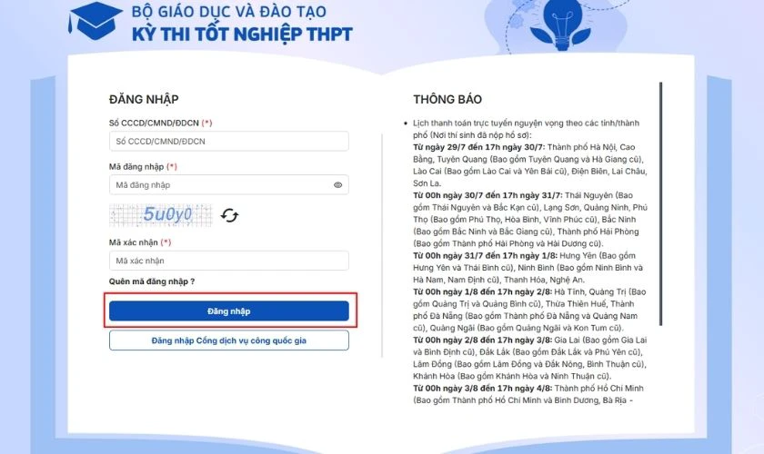 Bước 3: Nhấn nút Đăng nhập để vào hệ thống của Bộ GD&ĐT