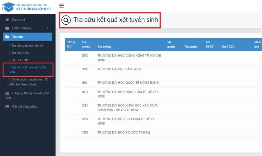 Bước 5: Xem kết quả xét tuyển đại học 2025