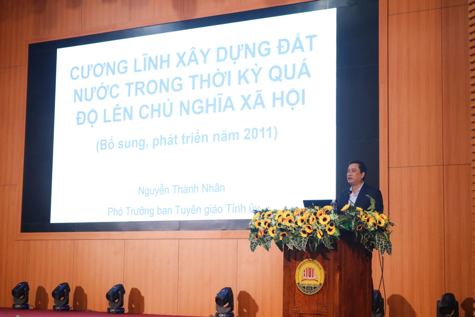 Đồng chí Nguyễn Thành Nhân, Phó Trưởng ban Tuyên giáo Tỉnh uỷ báo cáo chuyên đề đầu tiên