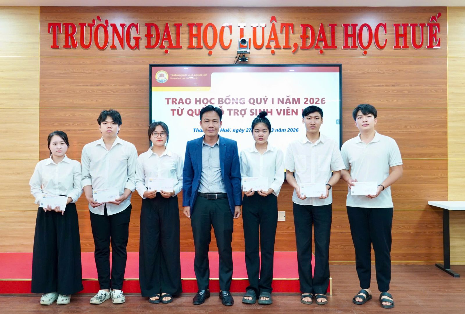 Ngày cập nhật: 27-03-2026Chiều ngày 27/3/2026, Trường Đại học Luật, Đại học Huế tổ chức Lễ trao học bổng hỗ trợ sinh viên có hoàn cảnh đặc biệt khó khăn từ Quỹ hỗ trợ sinh viên của Nhà trường.