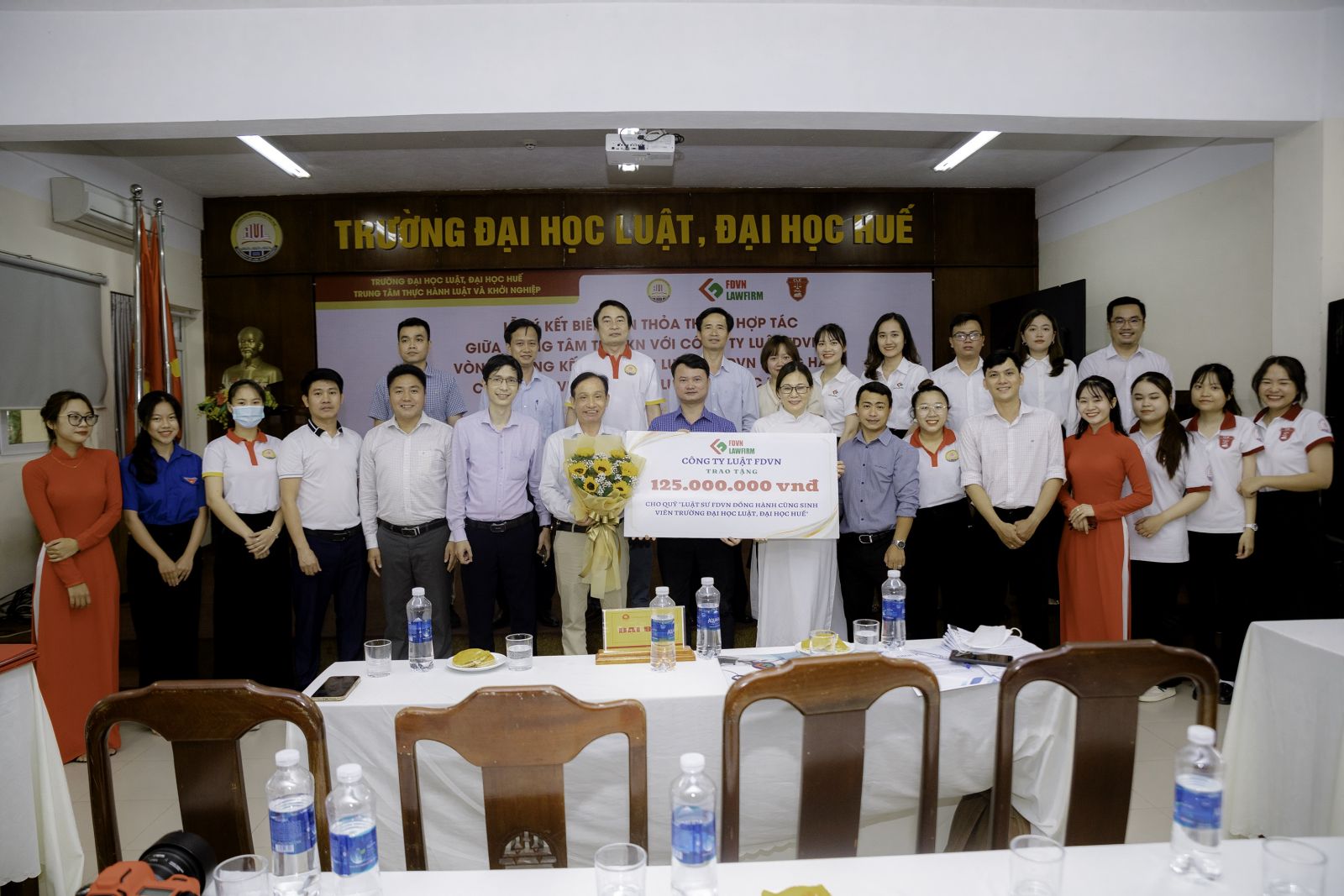 Đồng thời Công ty Luật FDVN cũng đã dành tặng suất học bổng 125 triệu đồng để đồng hành cùng sinh viên trường Đại học Luật, Đại học Huế.