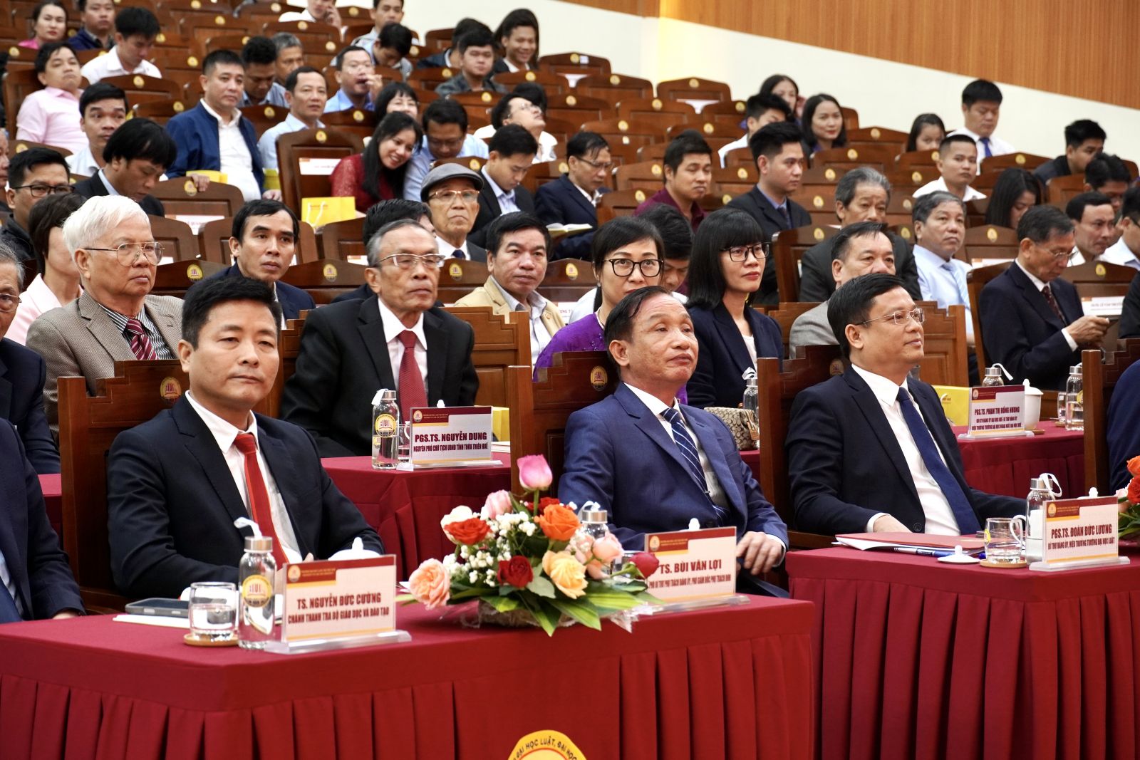 Về phía Trường Đại học Luật, Đại học Huế có PGS.TS. Đoàn Đức Lương, Bí thư Đảng uỷ, Hiệu trưởng Nhà trường; PGS.TS. Nguyễn Duy Phương, Phó Bí thư Đảng uỷ, Phó Hiệu trưởng Nhà trường; TS. Nguyễn Hồng Sơn, Chủ tịch Hội đồng trường; Trưởng, phó các đơn vị trong Nhà trường; Quý Thầy Cô nguyên lãnh đạo trường qua các thời kỳ; Các đồng chí đại diện cho Công đoàn, Đoàn thanh niên, Hội cựu chiến binh, Hội cựu giáo chức; Các đồng chí lãnh đạo, nguyên lãnh đạo các Khoa, Phòng ban trong trường qua các thế hệ; Các đại biểu đại diện cho gần 10 nghìn sinh viên, học viên cao học và nghiên cứu sinh trong toàn trường và toàn thể viên chức, người lao động của Nhà trường.