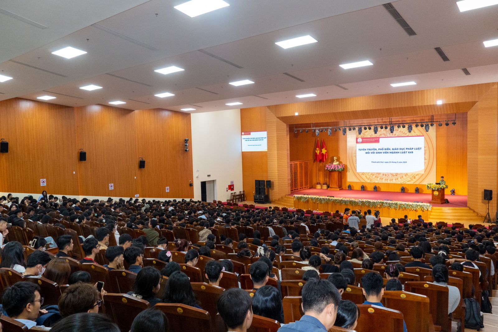Ngày cập nhật: 25-09-2025Trước những diễn biến phức tạp của tình hình tội phạm trên không gian mạng, trong hai ngày 24, 25/9/2025, Trường Đại học Luật, Đại học Huế đã phối hợp cùng lực lượng Công an tổ chức chương trình tuyên truyền, phổ biến, giáo dục pháp luật cho hơn 1.400 tân sinh viên khóa 49. Đây là hoạt động góp phần nâng cao nhận thức pháp luật và kỹ năng phòng tránh các thủ đoạn lừa đảo trong môi trường số cho sinh viên ngay từ những ngày đầu bước chân vào giảng đường đại học.