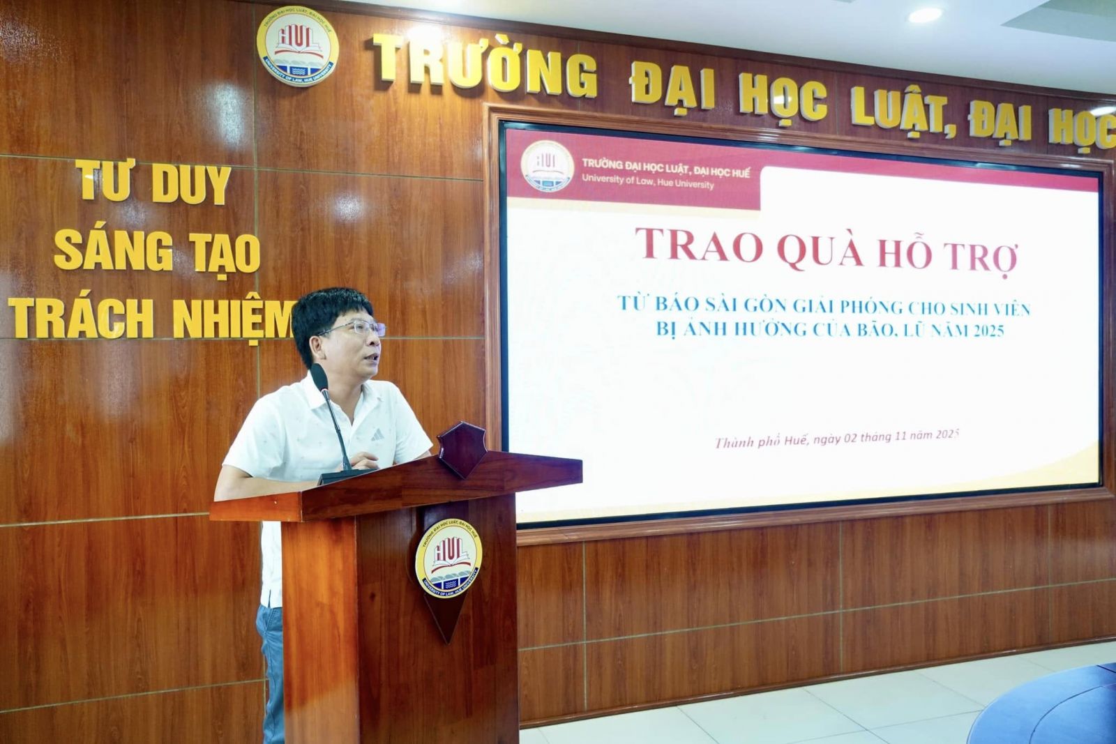 Đại diện Trường Đại học Luật, Đại học Huế, ThS. Huỳnh Tây đã gửi lời cảm ơn sâu sắc đến Báo Sài Gòn Giải Phóng vì sự quan tâm, hỗ trợ kịp thời, một nghĩa cử nhân văn thể hiện tinh thần gắn kết giữa cơ quan báo chí và nhà trường trong công tác đồng hành cùng sinh viên.