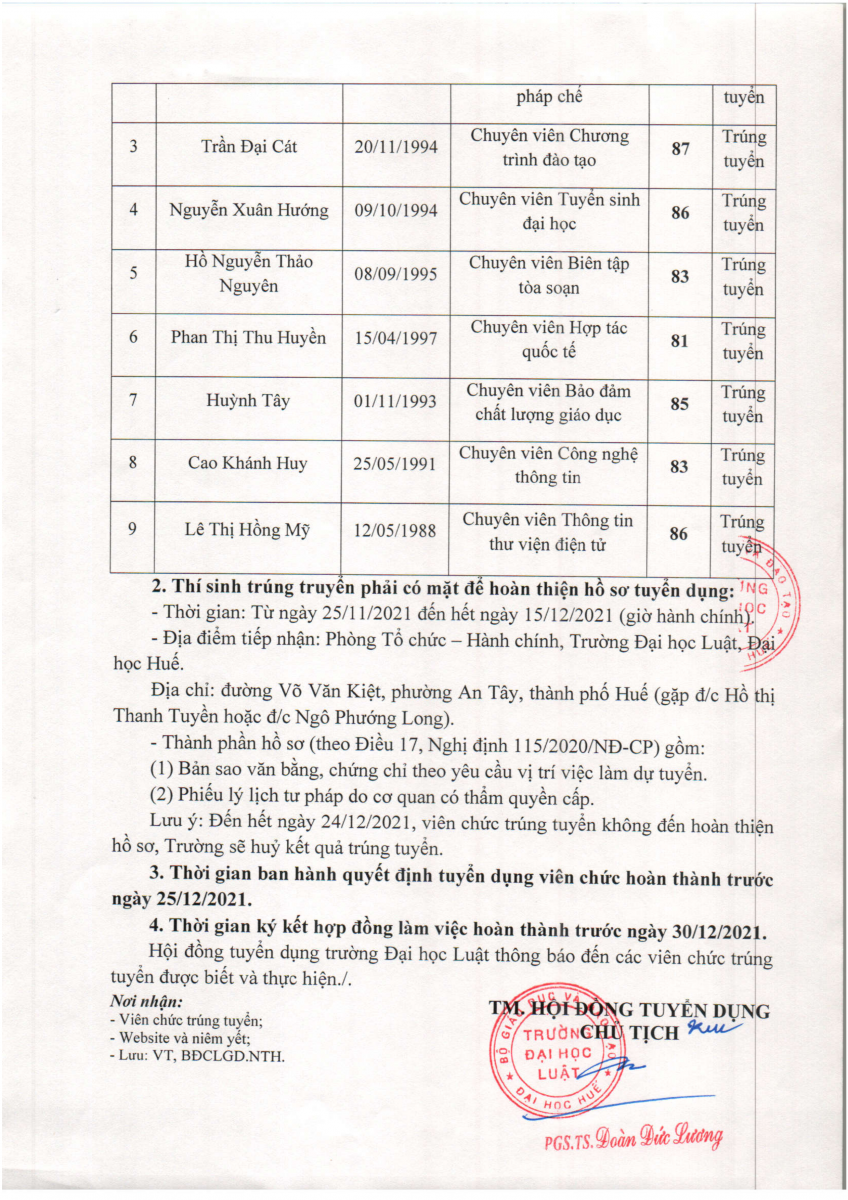 Thông báo kết quả tuyển dụng viên chức năm 2021