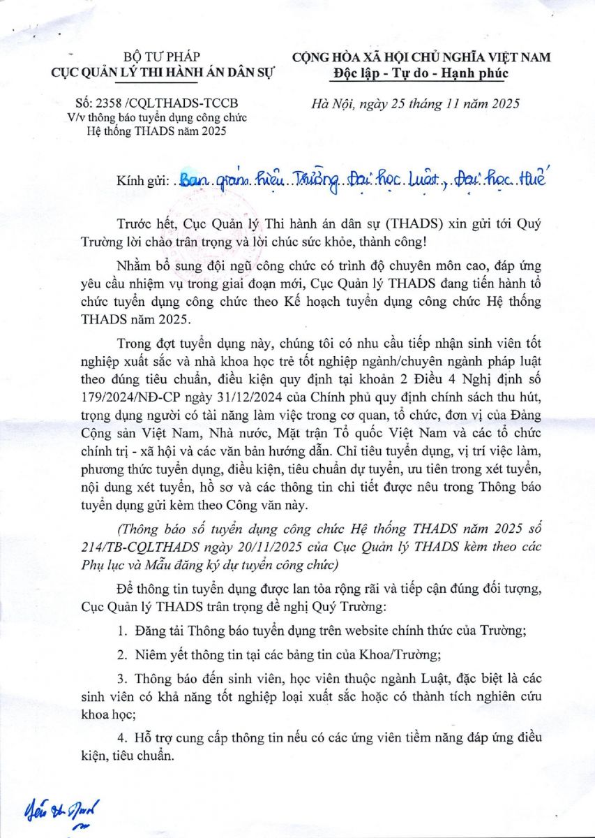 Thông báo tuyển dụng công chức hệ thống THADS năm 2025